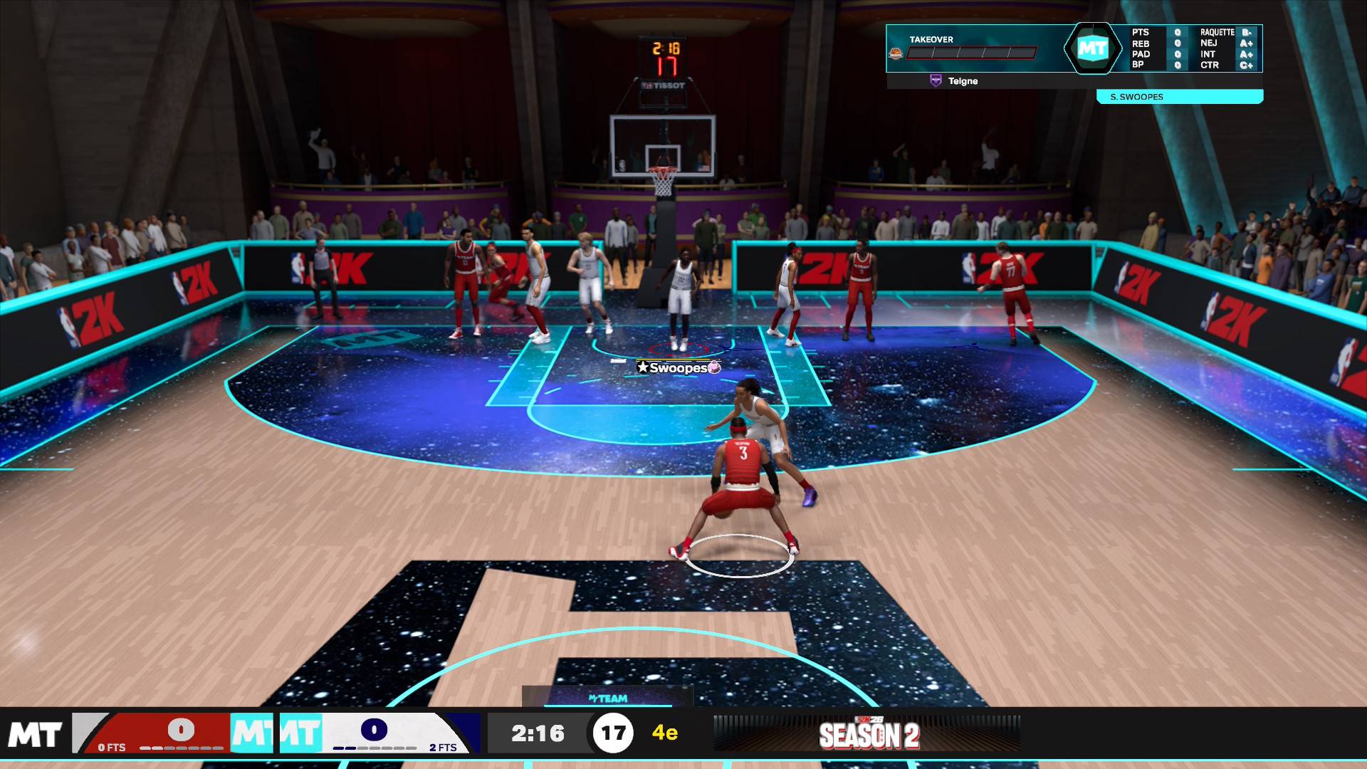C’est aussi un moteur qui permet la personnalisation à outrance, en combinant différents styles de layup, de jeu au poste ou de shoots en sortie d’écran. La défense n’est pas en reste, puisqu’elle se voit encore améliorée pour stopper efficacement les attaques un peu trop faciles, et surtout dans la gestion des collisions, le gros point noir de l’édition 2K25.