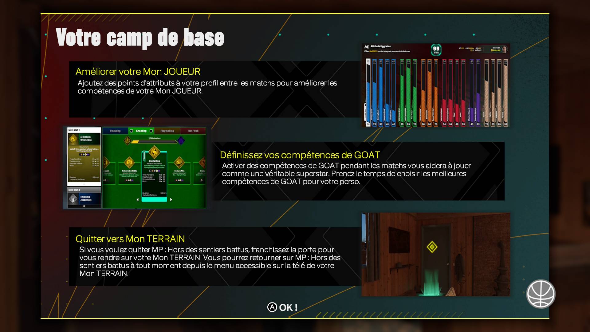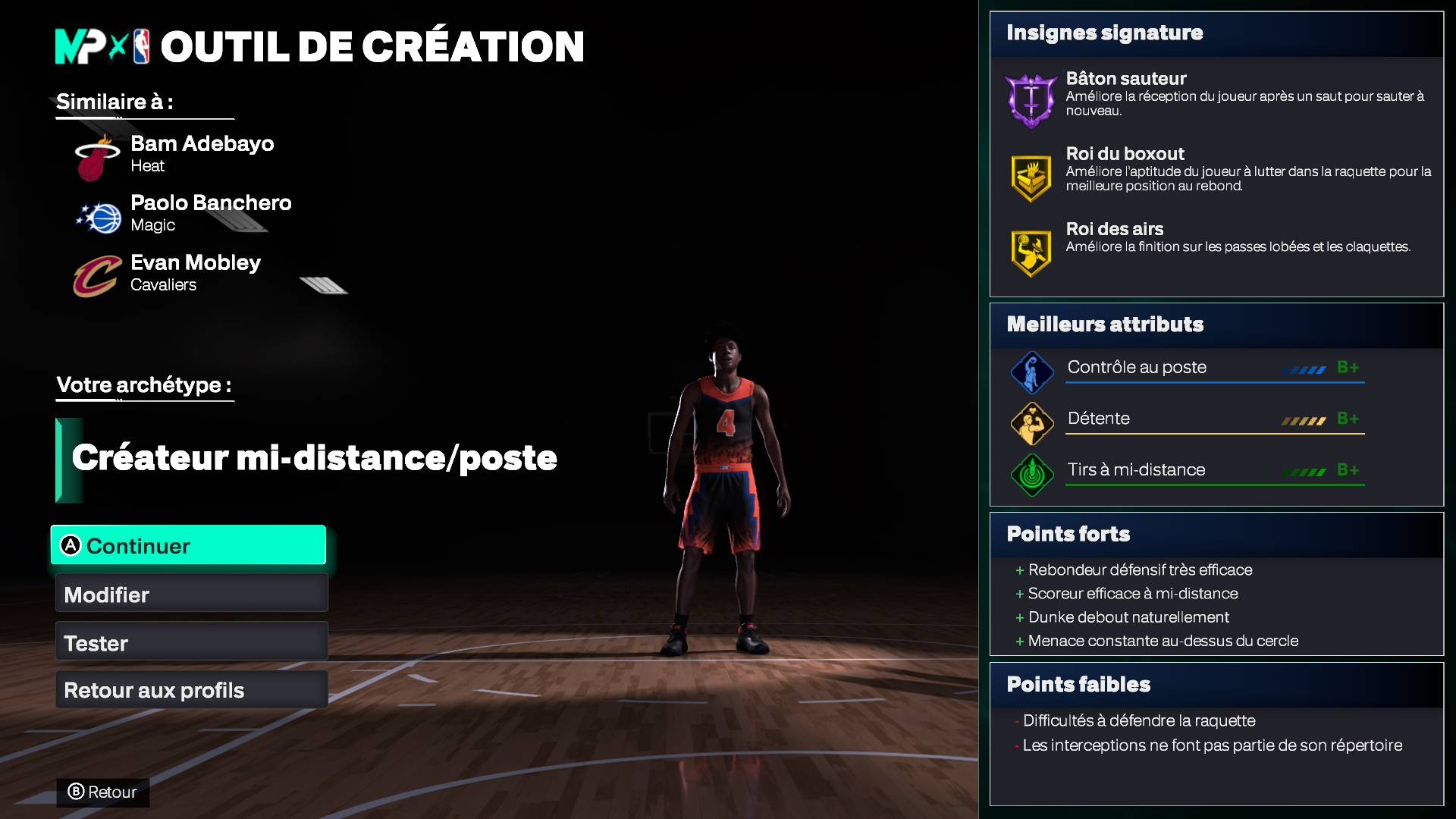 La création de l’avatar passe aussi par un catalogue d’animations, utile pour saisir l’impact des mouvements associés à chaque profil de joueur, mais aussi ses faiblesses évidentes dans la phase finale de création, le « Scouting Report ». C’est au travers de l’option « Create your Own Build », permettant de présenter des dizaines de comparaisons de joueurs, que la création devient encore plus ludique. Il s’agit d’un facilitateur de choix des insignes, ces attributs boostés aux niveaux à sélectionner — entre bronze, argent, or, Hall of Fame et légende — dont les minimums de points d’attributs à déverrouiller permettent de redistribuer les points restants dans d’autres catégories.