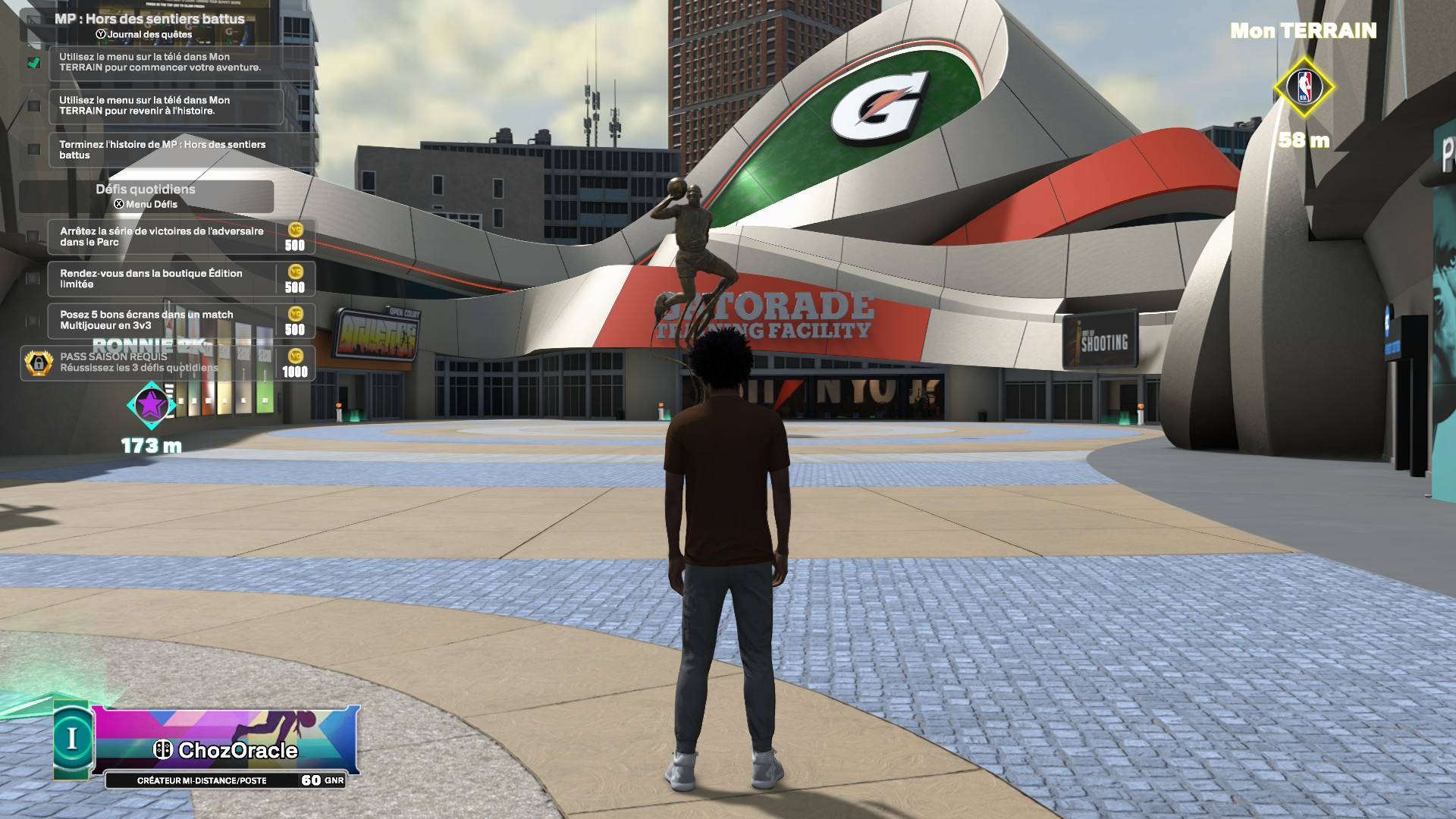 Nous avons à présent droit à une carte plus restreinte, ce qui permet de parcourir moins de distance entre les différents lieux, un changement loin d’être négatif. Ici aussi, les VC sont étonnamment plus faciles à accumuler grâce à la multitude de récompenses disponibles. Mais le grand retour dans cette version 2026 de The City est sans conteste celui de MyPARK, hérité des premiers épisodes de NBA 2K proposant du jeu en ligne, avec des playgrounds accessibles via un ballon géant visible dans la ville.