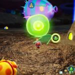 Fier capitaine du Dolphin, Olimar s’est encore écrasé bien malgré lui sur PNF-404. Pour l’en extraire, on envoie une équipe de secouristes qui, elle aussi, se crashe sur la mystérieuse et hostile planète. Pour la première fois dans la peau d’un avatar personnalisable (et nommable), dont les options de configuration sont finalement trop limitées pour rendre cette particularité indispensable, c’est à nous joueurs qu’incombe le devoir de sauver tout ce petit monde ! Après un court tutoriel dans la peau d’Olimar, lequel est à la recherche de sa radio interstellaire pour lancer un S.O.S, puis la création de son propre personnage, le joueur est invité… à un second tutoriel ! C’est un fait : Pikmin 4 met du temps à démarrer, explicitant longuement ses mécaniques de jeu et ses possibilités pour ne pas perdre le néophyte, mais aussi à narrer son histoire avec de nombreux dialogues entre le héros et les personnages non-joueurs. Très verbeux pour pas grand-chose, on n’attendait pas forcément le titre sur ce terrain-là, et si les débuts de l’aventure tendent à s’éterniser sous un flot continu de textes, la majeure partie du jeu met davantage l’accent sur son gameplay.