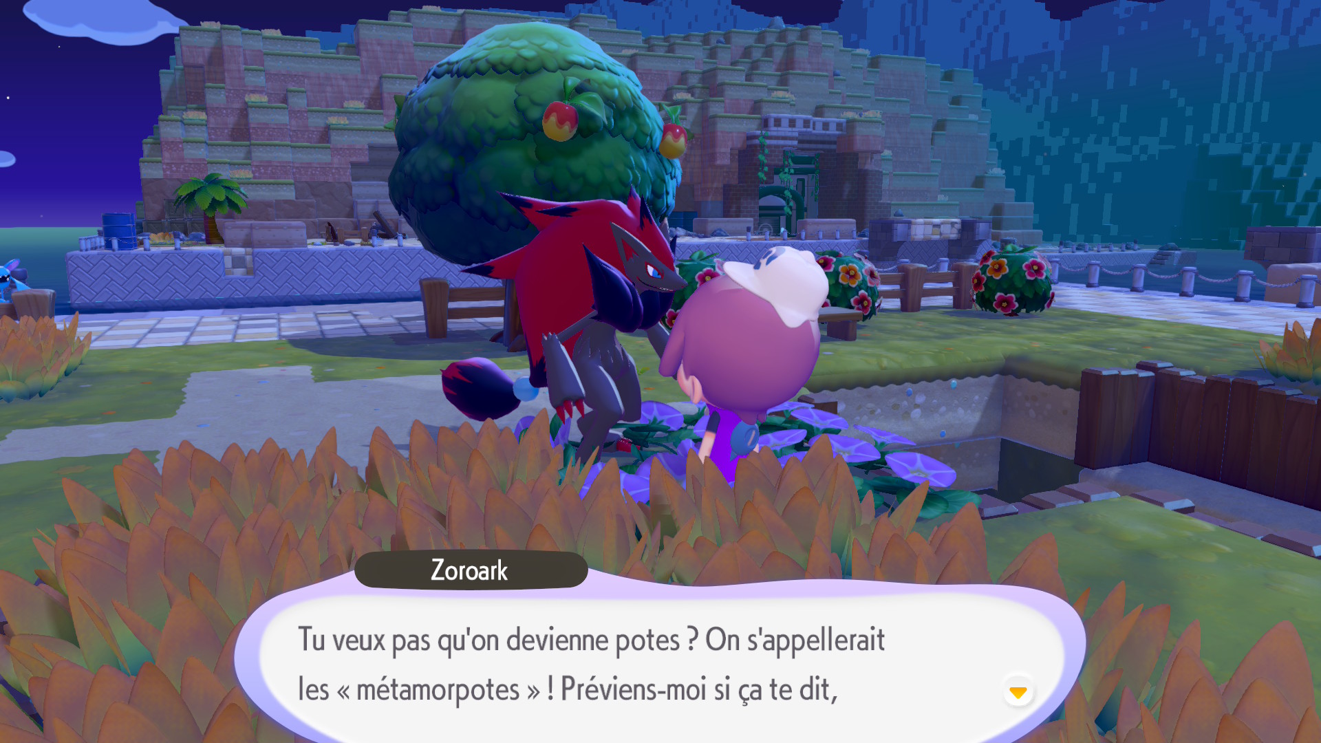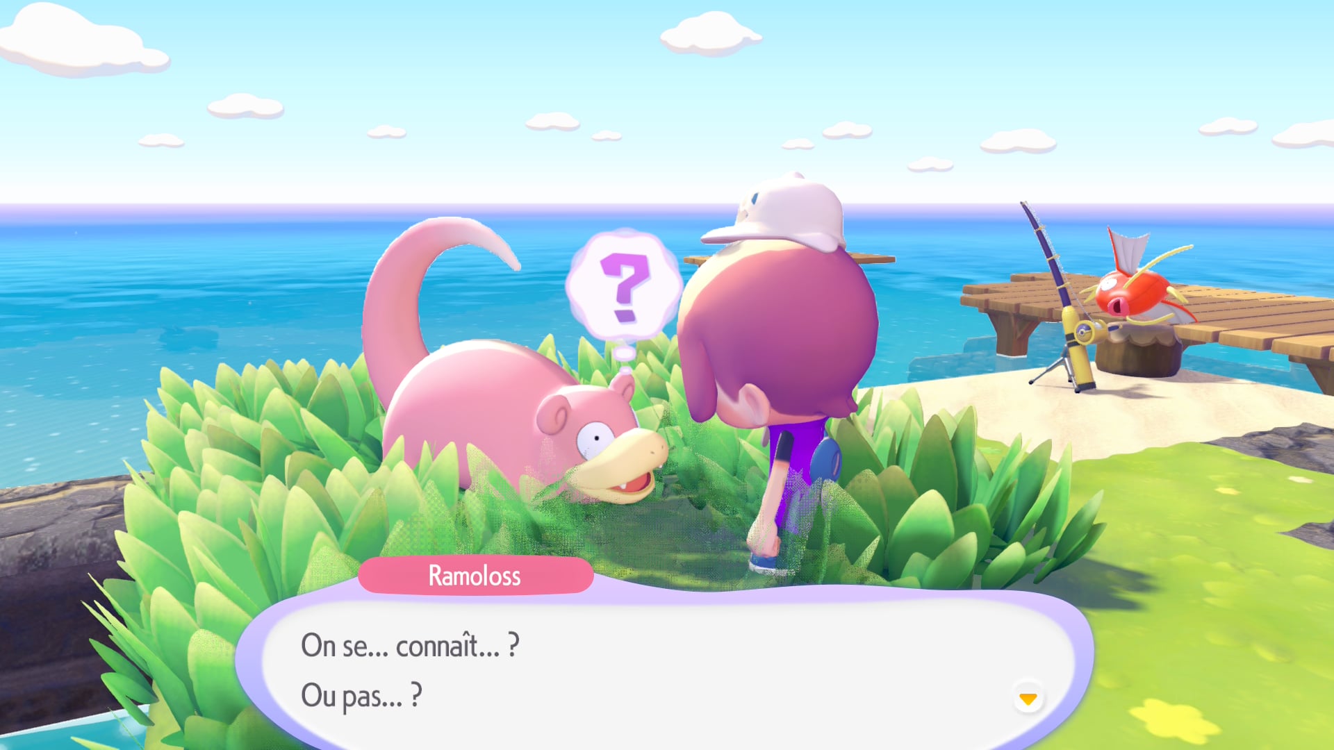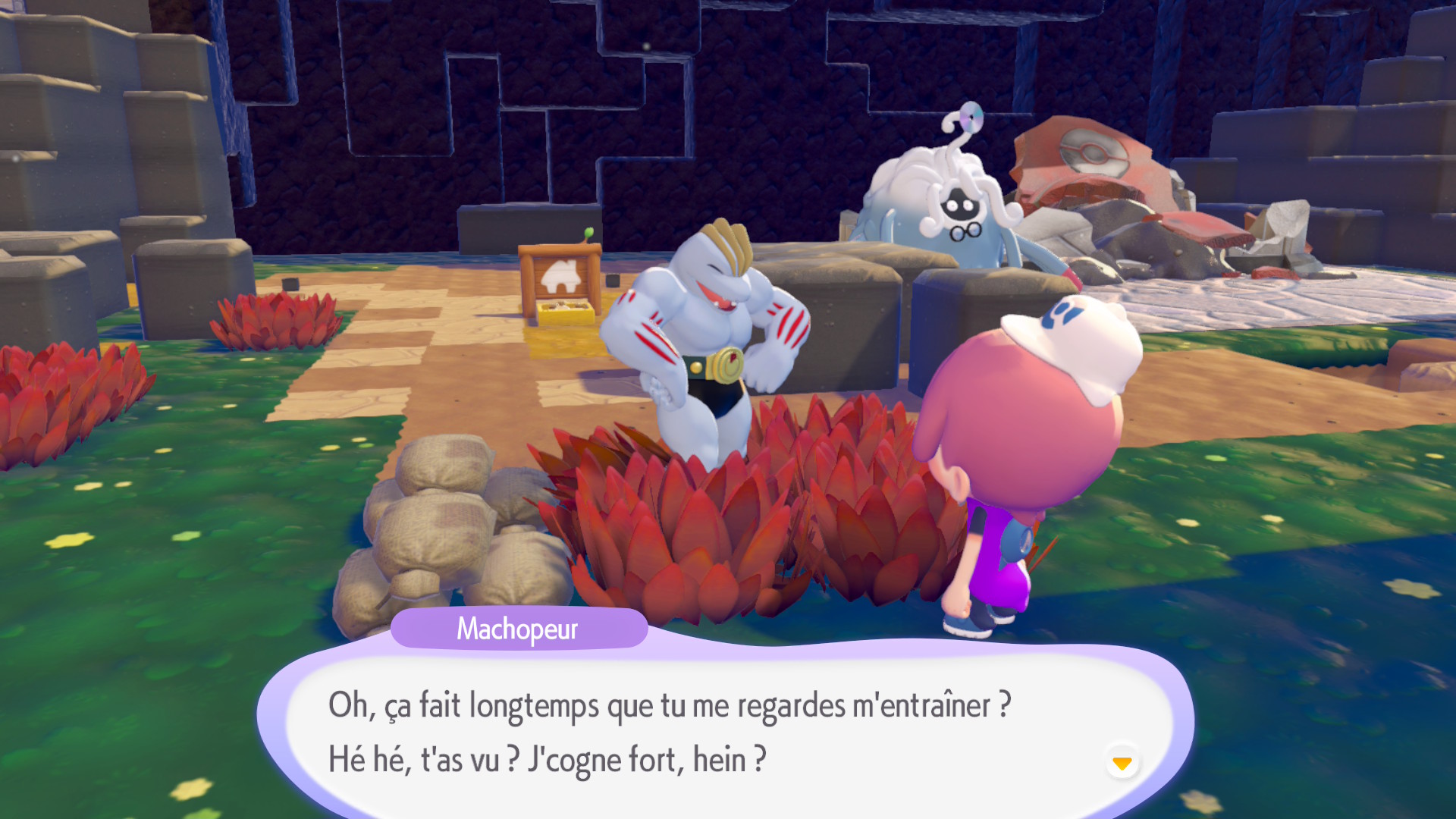 Le travail effectué sur les Pokémon y joue aussi pour beaucoup. Dans un premier temps, on se disait qu’il était dommage que le jeu se repose sur les animations et modèles « classiques » de la série. Toutefois, les développeurs ont réussi à mettre correctement en valeur un très grand nombre de Pokémon. Certains d’entre eux, qui n’ont pas réussi à avoir leur moment de gloire dans la série principale, bénéficient même d’une mise en lumière qui saura ravir de nombreux fans. On aime les voir s’épanouir, communiquer entre eux ou avec Métamorph. Il est d’ailleurs aussi intéressant de réfléchir aux défis que les localisations dans les différentes langues ont dû représenter. Chaque Pokémon a ses propres mimiques, ses façons de parler, qui peuvent être difficiles à retranscrire selon la langue. Dans le cas de la version française, c’est une véritable réussite. Certains Pokémon seront très polis, d’autres parleront de manière plus familière… Cela amène souvent à des séquences drôles et mémorables, ce qui donne aussi envie d’aller à la rencontre de toutes les créatures.