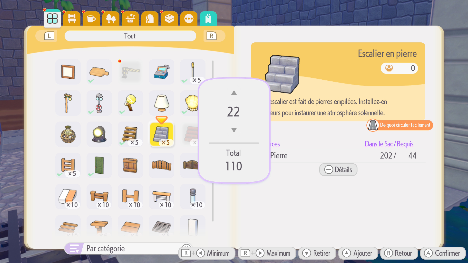 Évidemment, Omega Force a pu se reposer sur son savoir-faire après le développement de Dragon Quest Builders 2, mais cela ne signifie pas pour autant que Pokémon Pokopia en est une copie avec un simple habillage et des Pokémon en tant que personnages. Le titre a une véritable identité et toutes ses mécaniques de gameplay ont été soigneusement élaborées, avec des références bien pensées à la série, que ce soit au niveau des capacités de Métamorph, des objets, des meubles ou des matériaux. Métamorph peut récolter et créer un très grand nombre de matériaux, comme des blocs de terrain (gazon, terre, sable, marbre…), fabriquer des meubles ou des structures grâce à l’aide d’autres Pokémon. On peut également citer les légumes, les CD pour DJ Motisma… Il y a tant à faire que cela devient parfois presque intimidant, surtout si l’on manque d’imagination. Dans le cas contraire, les personnes qui arrivent très bien à faire travailler leurs méninges pour créer les lieux de leurs rêves devraient être ravies avec Pokémon Pokopia, tant les possibilités sont déjà nombreuses en solo. Toutefois, les plus sensibles et impatients pourront être frustrés à la fois par le système de rangement, la lenteur de la progression entre l’attente pour la construction des bâtiments ou encore l’apparition des nombreux Pokémon qui se sont cachés. Si des personnes peuvent être dans ce cas, on déconseille alors les sessions de jeu très longues afin d’éviter l’indigestion. Ici, la répétitivité n’en est pas la raison, la boucle de gameplay est d’ailleurs assez satisfaisante et les activités sont très variées, mais si l’on souhaite avant tout finir l’aventure principale, il peut être judicieux de ne pas vouloir en faire trop d’un coup.