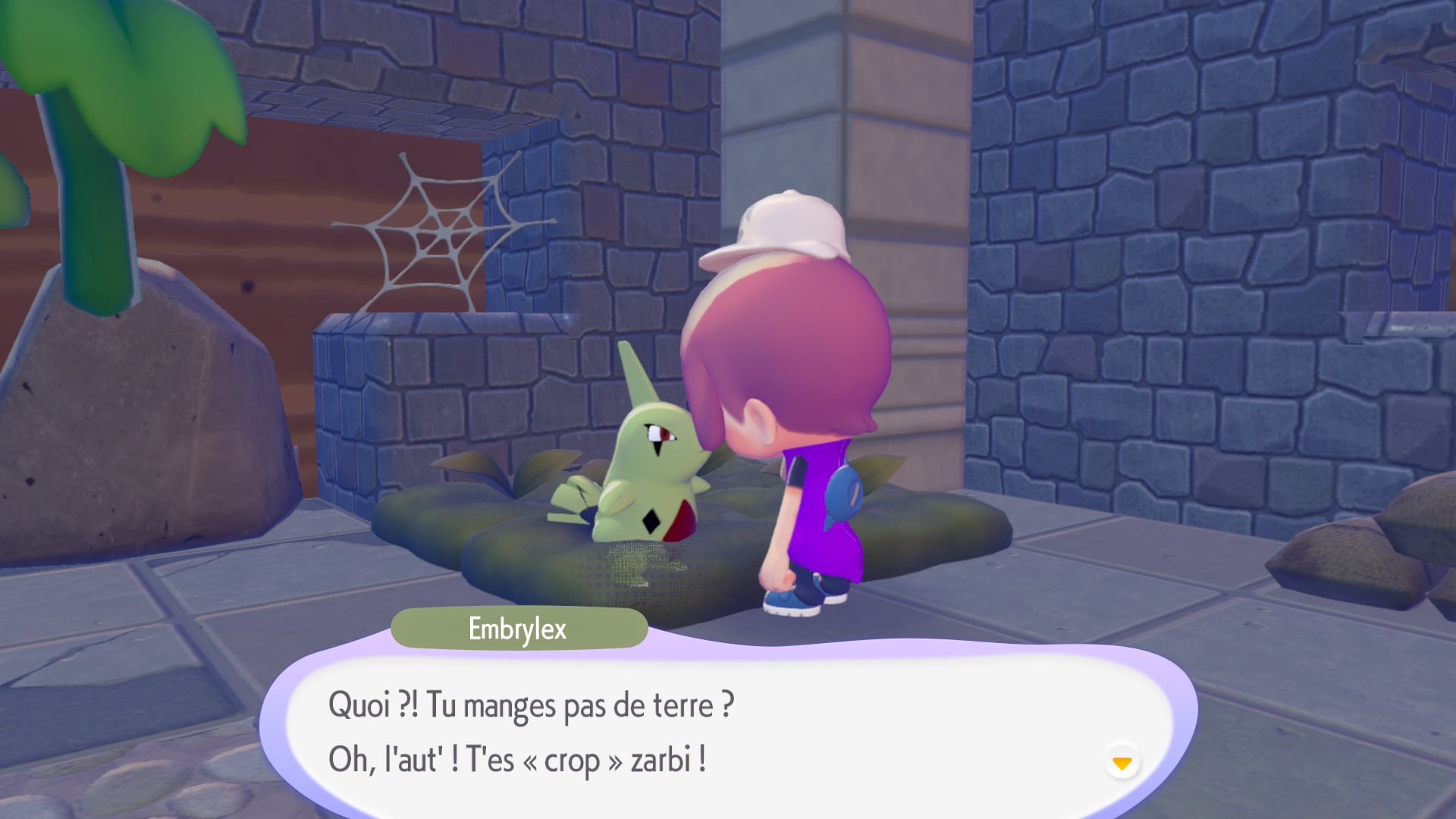 Le jeu laisse petit à petit place grandement à l’imagination, mais on peut aussi se contenter de se servir des fondations encore présentes dans ce monde dévasté pour rétablir les environnements et construire des bâtiments. En plus de cela, l’aventure est remplie de requêtes, importantes ou secondaires, qui nous aideront à savoir quoi faire exactement. Bien sûr, il faudra aussi réfléchir, notamment pour comprendre, apprendre et assimiler les mécaniques de gameplay, dont certaines peuvent apparaître après des heures et des heures de jeu. On peut par exemple parler de la peinture, de la possibilité de surfer sur l’eau ou de voler. Tous ces éléments ont été pensés de manière très précise pour que cela corresponde à la fois à l’histoire du jeu et à la série Pokémon de façon générale. C’est ainsi que l’on ressent l’implication de Game Freak à chaque recoin.