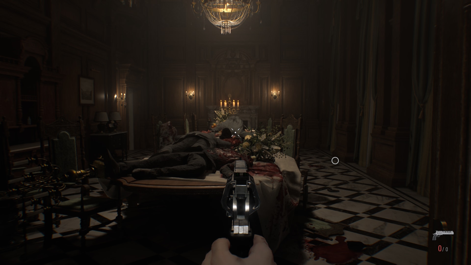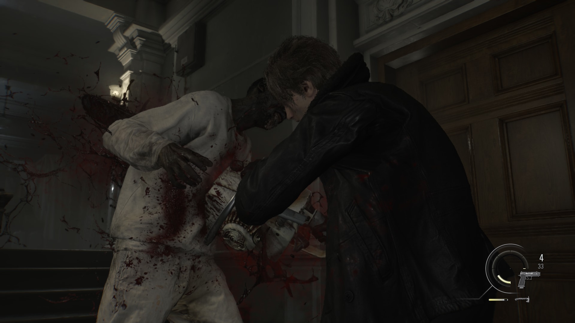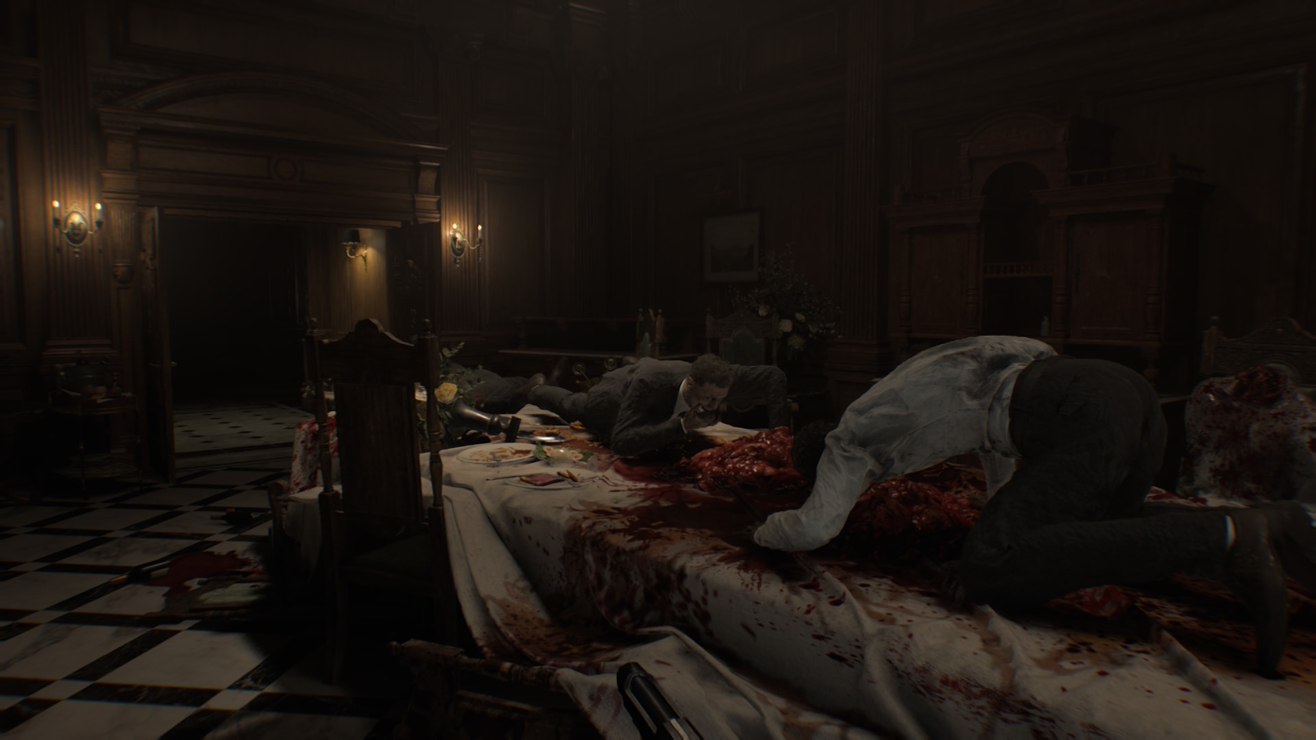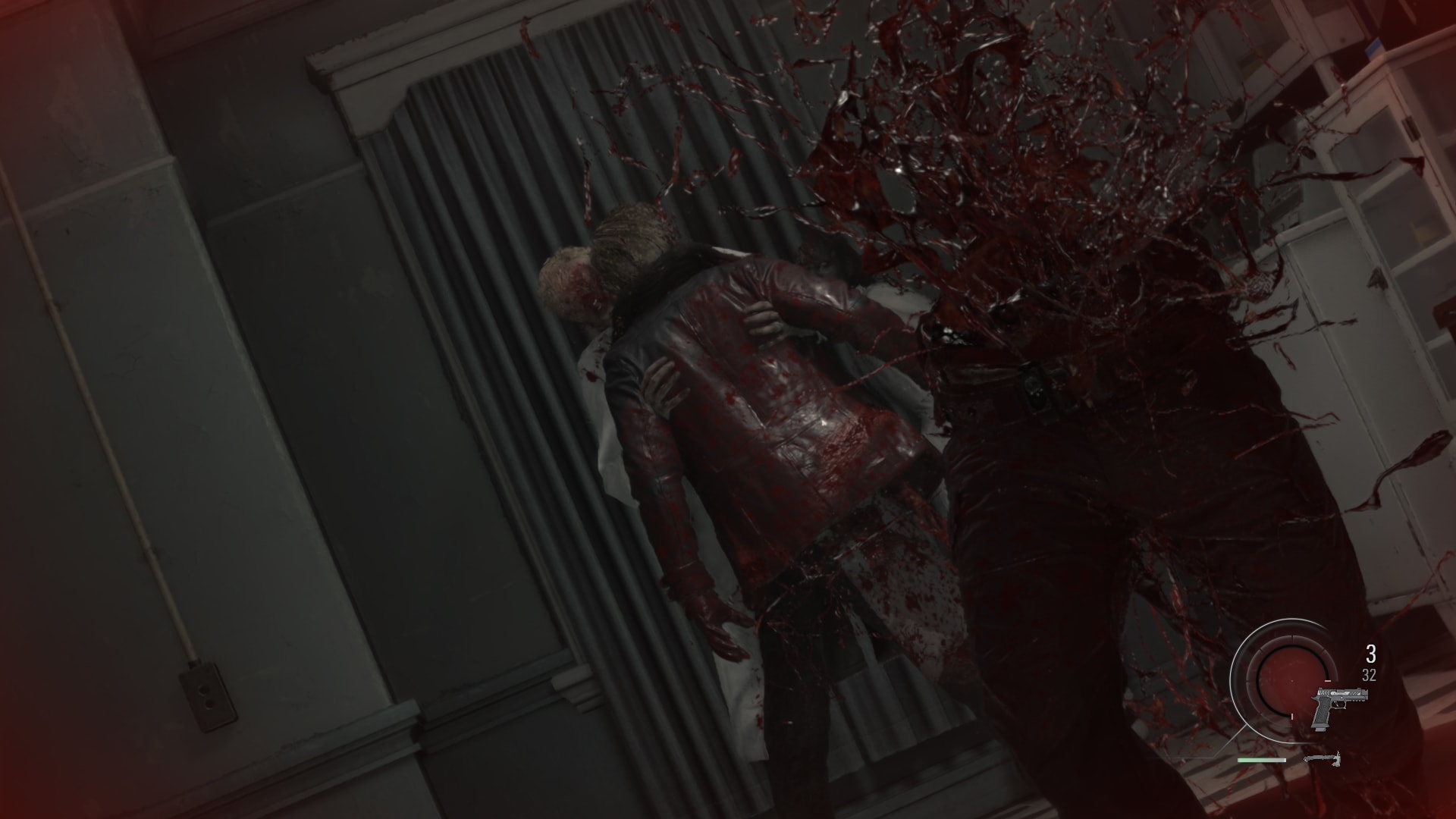 L’histoire joue sur cette complémentarité. Le manoir du docteur Gideon, scientifique et savant fou, sert de cadre initial à cette aventure malsaine où l’horreur suinte de chaque recoin. Toutefois, le jeu ne s’arrête pas là et propose un retour inattendu dans un des lieux emblématiques de la saga où rodent désormais des abominations du passé. De quoi conférer à l’ensemble une dimension nostalgique et mélancolique que les fans sauront apprécier à sa juste valeur. Capcom a fait le choix d’un récit intimiste, avec peu de personnages secondaires et d’intervenants extérieurs, pour mieux se concentrer sur Grace et Leon. Ce parti pris narratif fonctionne à merveille et permet de clore intelligemment un chapitre de la saga en révélant certains de ses rouages.