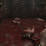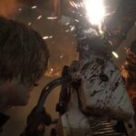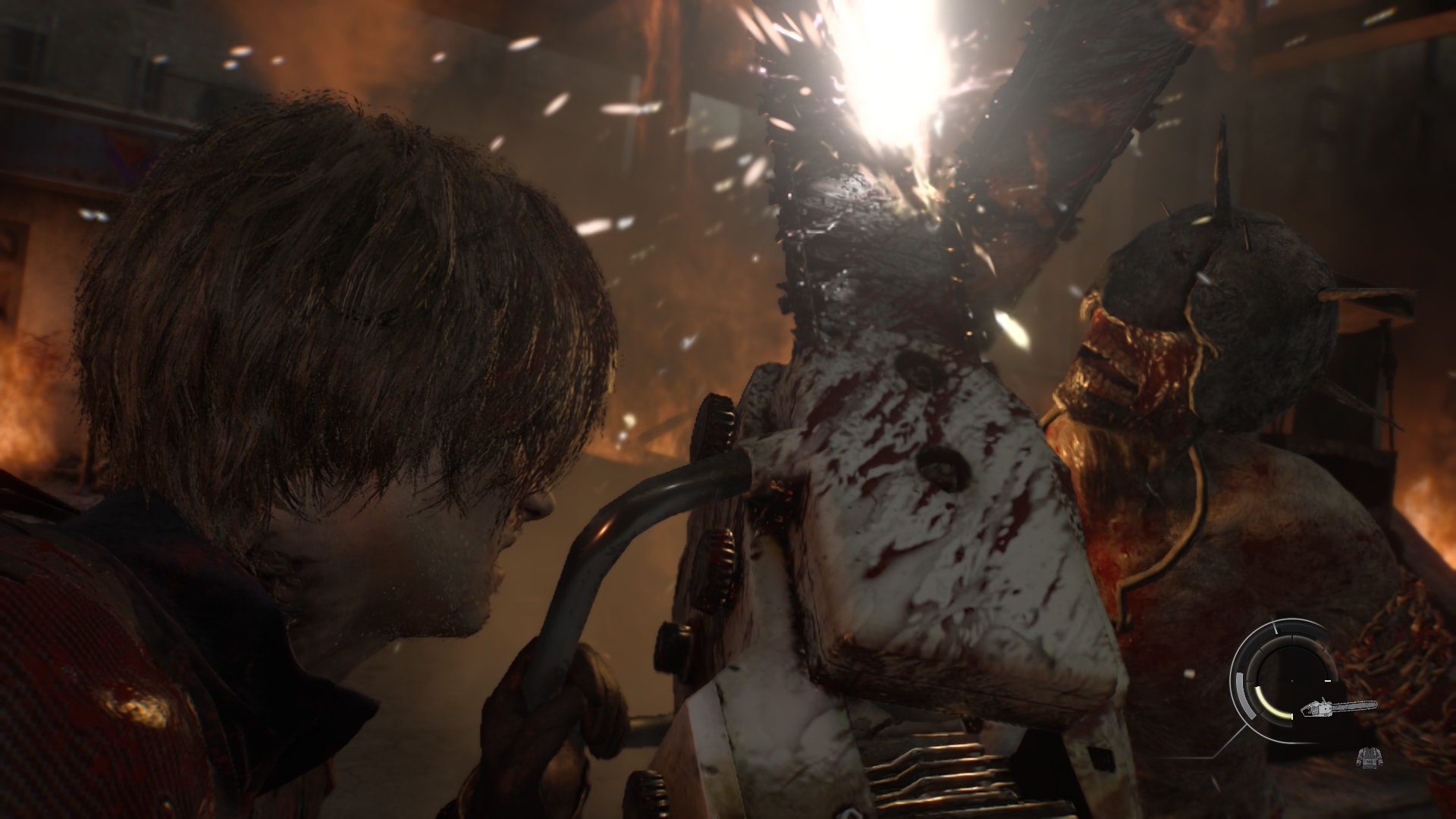 Pour ne rien gâcher, le système de combat de Leon regorge de subtilités. Sa hache, arme secondaire exclusive, permet de parer les attaques avec le bouton L, de frapper les ennemis et aussi de les achever d’un coup puissant lorsqu’ils sont presque morts. Elle doit cependant être régulièrement aiguisée en maintenant L et Y sous peine de perdre en efficacité. Cette petite contrainte ajoute une légère couche tactique bienvenue sans jamais ralentir le rythme effréné des affrontements. Les finishing moves à la Mortal Kombat varient selon l’arme équipée, et il est possible de ramasser divers objets pour les balancer directement sur les adversaires, provoquant des coups critiques dévastateurs. Ces attaques improvisées permettent de ménager ses munitions tout en infligeant des dégâts conséquents, une mécanique simple mais redoutablement efficace. Il est par ailleurs possible de combiner deux grenades pour créer une super grenade et transformer la zone en véritable champ de ruines.