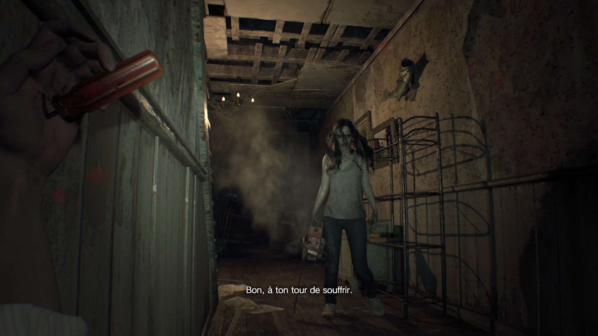 Les jump scares parsèment en outre l’aventure avec une efficacité redoutable, et l’ambiance sonore minimaliste renforce l’immersion en laissant le joueur seul, obnubilé par les bruits de couloirs et par ses propres angoisses. Capcom a visiblement tout misé sur la terreur pure avec Grace, et le résultat est saisissant. On ne compte plus les moments où l’on retient son souffle et où chaque pas résonne comme une menace. Certaines séquences restent gravées dans la mémoire, non pas pour leur côté spectaculaire ou tape-à-l’œil, mais pour leur capacité à instaurer un malaise durable. Les pleurs, les cris étouffés, les râles, les bruits de pas qui résonnent dans le vide contribuent à créer une atmosphère de terreur permanente. C’est sans doute l’un des Resident Evil les plus efficaces à ce jour en matière d’horreur brute, à condition d’accepter de jouer le jeu et de se laisser submerger par l’oppression constante. Une expérience qui s’apprécie encore plus lors de sessions nocturnes, le casque vissé sur les oreilles et le son à fond, pour profiter pleinement des sensations proposées.