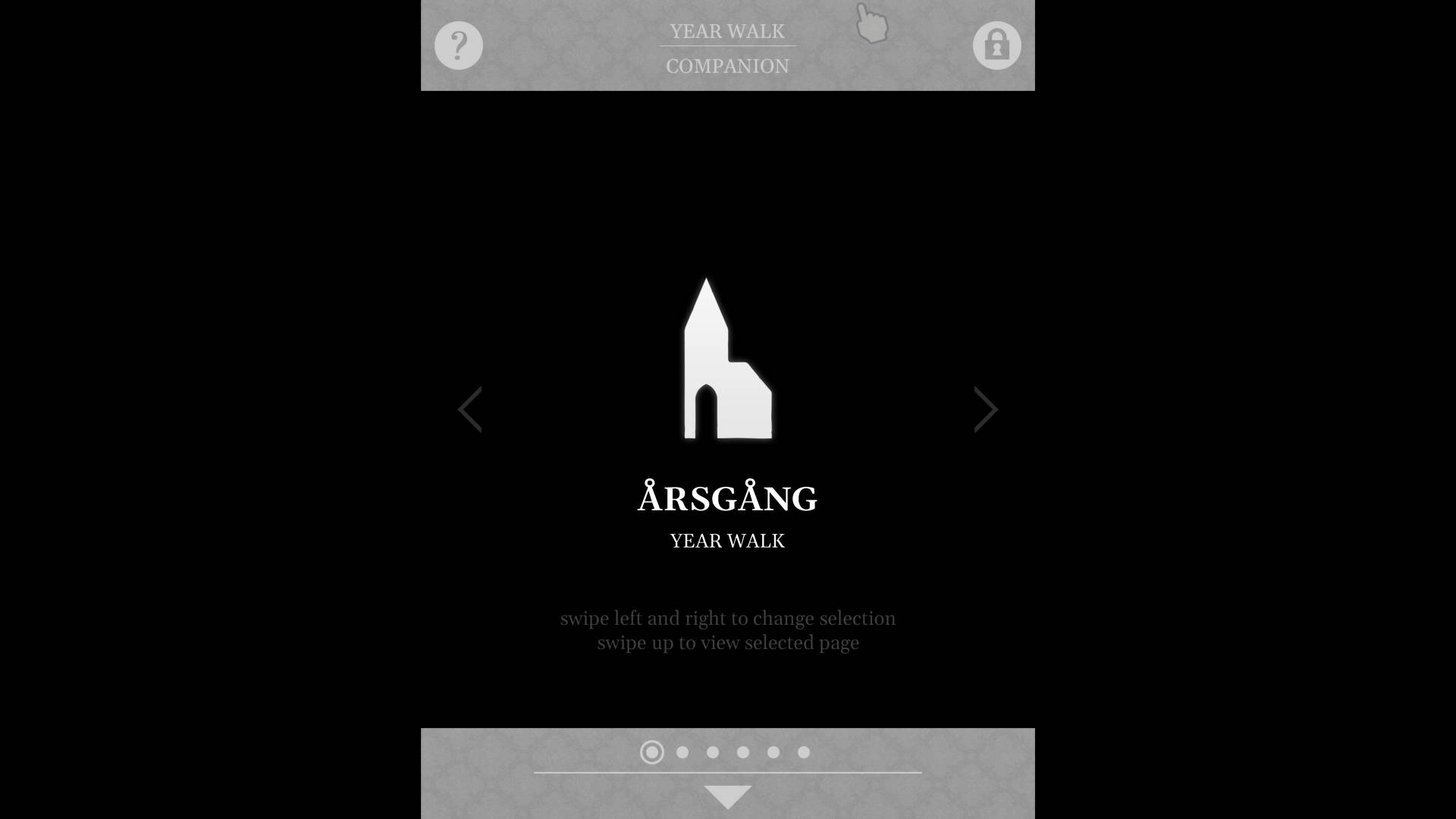La deuxième trilogie sera plus narrative et surtout textuelle. Attention évidemment, ce sont des expériences à vivre en anglais. Ainsi, on commence très fort avec certainement le chef-d’œuvre de la compilation, Year Walk, publié le 21 février 2013. Formellement jusque-là, Simogo n’est représenté que par ses deux fondateurs, mais ils ont pour la suite toujours fait appel aux mêmes personnes : Magnus Jensen (programmeur), Jonas Tarestad (histoire/narration), Daniel Olsén (musique/son), Jonathan Eng (musique), Linnea Olsson (chant/musique), Åsa Wallander (concept art 2D/conception graphique/gestion de projet), Johanna Meijer (illustrations) et Carl Karjalainen (concept art/modélisation de personnages/animation).