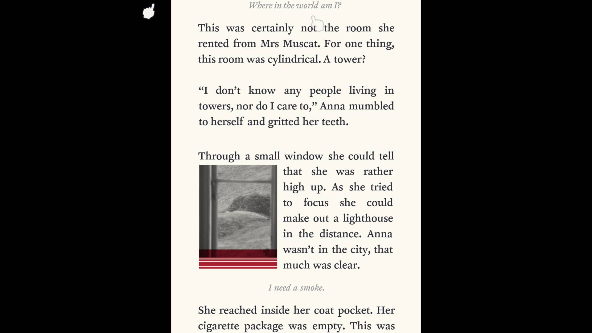 Device 6, sorti le 17 octobre 2013 est certainement le jeu le plus ambitieux du studio jusque-là. Il s’agit d’un thriller surréaliste qui joue subtilement avec les conventions des jeux d’énigme classiques, mais également avec la littérature, mélangeant puzzle et roman numérique. Le titre propose d’incarner Anna, qui se réveille à moitié amnésique dans un château situé sur une île perdue et se retrouve soumise à des tests imposés par un mystérieux homme coiffé d’un chapeau melon. Le gameplay se repose entre autres sur la perspective, au travers de photos en 3D et du texte, qui peut pivoter ou se ramifier, exigeant du joueur de faire déplacer la caméra pour suivre le récit et la progression spatiale. Les puzzles sont intégrés au récit textuel, avec des indices cachés dans les mots, les images 3D et les sons. Il s’agit du second gros argument de cette compilation avec Year Walk, ils justifient à eux seuls l’investissement.