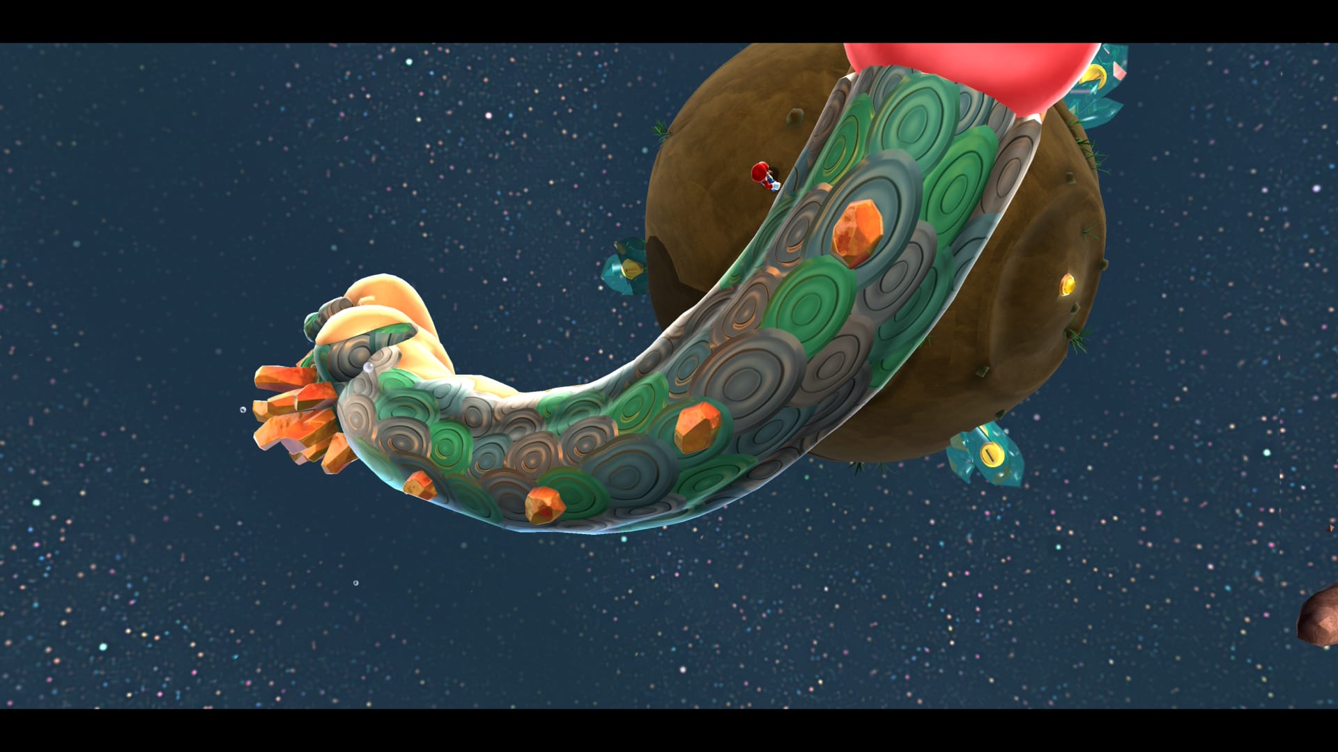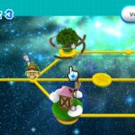 Dans Super Mario Galaxy 2, Bowser kidnappe à nouveau Peach grâce au pouvoir des étoiles, et Mario doit encore partir au fond de l’univers pour la retrouver. Contrairement au premier jeu cependant, la progression dans l’espace ne se fait pas à bord de l’astronef d’Harmonie. C’est d’ailleurs un des reproches que l’on fait souvent à ce titre : son manque de charme comparé au premier opus. Au lieu du hub charmant et apaisant de Super Mario Galaxy, Mario navigue cette fois-ci à bord d’une planète mobile en forme de tête de Mario, mini-hub qui accueille les compagnons rencontrés sur son chemin. Au lieu d’être projeté dans l’espace à partir des sympathiques dômes d’observation du vaisseau d’Harmonie, la planète-Mario progresse dans l’espace comme un vaisseau spatial, monde par monde et galaxie par galaxie. On retrouve une structure plus classique, rappelant les Mario 2D, et la linéarité s’en retrouve encore plus marquée.