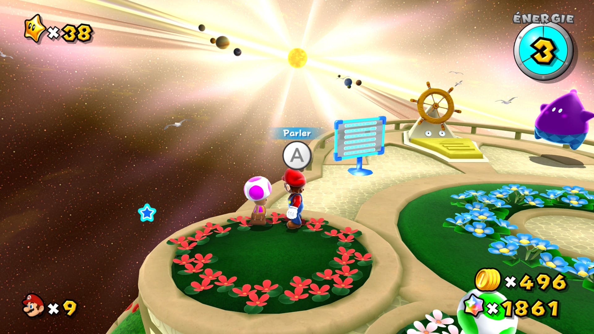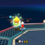 Dans Super Mario Galaxy, Mario embarque à bord de l’astronef d’Harmonie, immense et sublime vaisseau-observatoire, afin de rassembler suffisamment d’énergie stellaire pour retrouver sa chère Peach, enlevée une fois de plus par Bowser. Depuis l’observatoire, il s’envole à travers l’univers pour explorer des galaxies : des mondes miniatures qu’il doit parcourir pour collecter des étoiles et redonner sa gloire d’antan au vaisseau d’Harmonie. L’observatoire, que l’on ne retrouve pas dans le deuxième jeu, contribue immensément au charme de cet opus. Ce lieu apaisant, accompagné d’une musique envoûtante, comporte de nombreux dômes à partir desquels on peut explorer l’univers. Rendre de l’énergie au vaisseau est très satisfaisant, et on a toujours l’impression de « rentrer à la maison » lorsqu’on termine un niveau.