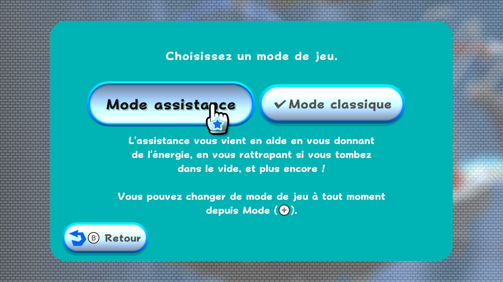 Qu’en est-il de la version 2025 ? Pour ce qui concerne les deux consoles Switch et Switch 2, les changements ne sont pas majeurs, mais apportent un peu de confort appréciable. Il est désormais possible de jouer en mode « assistance », c’est-à -dire avec de la vie supplémentaire qui se régénère au fur et à mesure, et sans possibilité de perdre une vie en tombant dans le vide. Ce mode rend le jeu accessible aux amateurs et au jeune public, et peut même être tentant pour les joueurs plus expérimentés dans les niveaux plus complexes vers la fin de l’aventure.