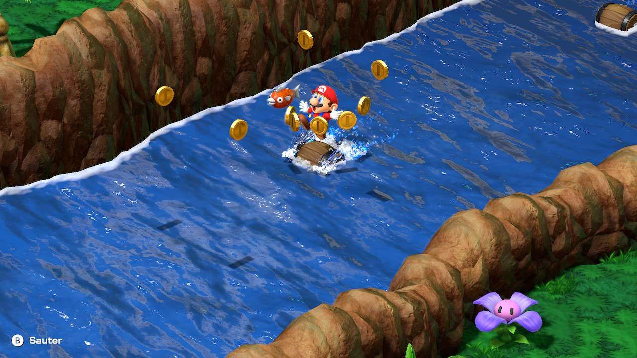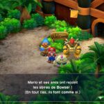 Jadis plutôt impressionnant avec ses sprites et environnements pré-calculés, le remake parait « forcément » moins ambitieux dans sa volonté de respecter l’œuvre de base, à la manière de celui de The Legend of Zelda : Link’s Awakening. Moderne, joli, mais aussi assez technique car s’il y a bien quelques rares chutes de framerate ici et là, notamment durant l’animation d’un coup trio ou lors de la première cinématique en jeu, Super Mario RPG se révèle suffisamment fluide. Surtout, on apprécie grandement la réorchestration de la bande-son signée par la légendaire compositrice Yoko Shimomura, absolument magnifique de bout en bout. Le joueur y (re)trouvera un thème de combat particulièrement entêtant, l’enchanteresse et mystérieuse musique du Dédale de la Forêt, l’amusant morceau de country du mini jeu du wagon dans la mine ou encore l’élégante piste du rez-de-chaussée de la Tour de Booster. Toutes font mouche, parvenant à réinsuffler des notes auxquelles la série originale nous a peu habitué. La patte singulière de Yoko Shimomura nous a rappelé d’autres de ses compositions plus récentes, comme certains morceaux présents dans Xenoblade Chronicles. Un pur délice, que les plus nostalgiques peuvent troquer à tout moment contre les versions originales disponibles dans les options du jeu.