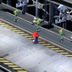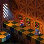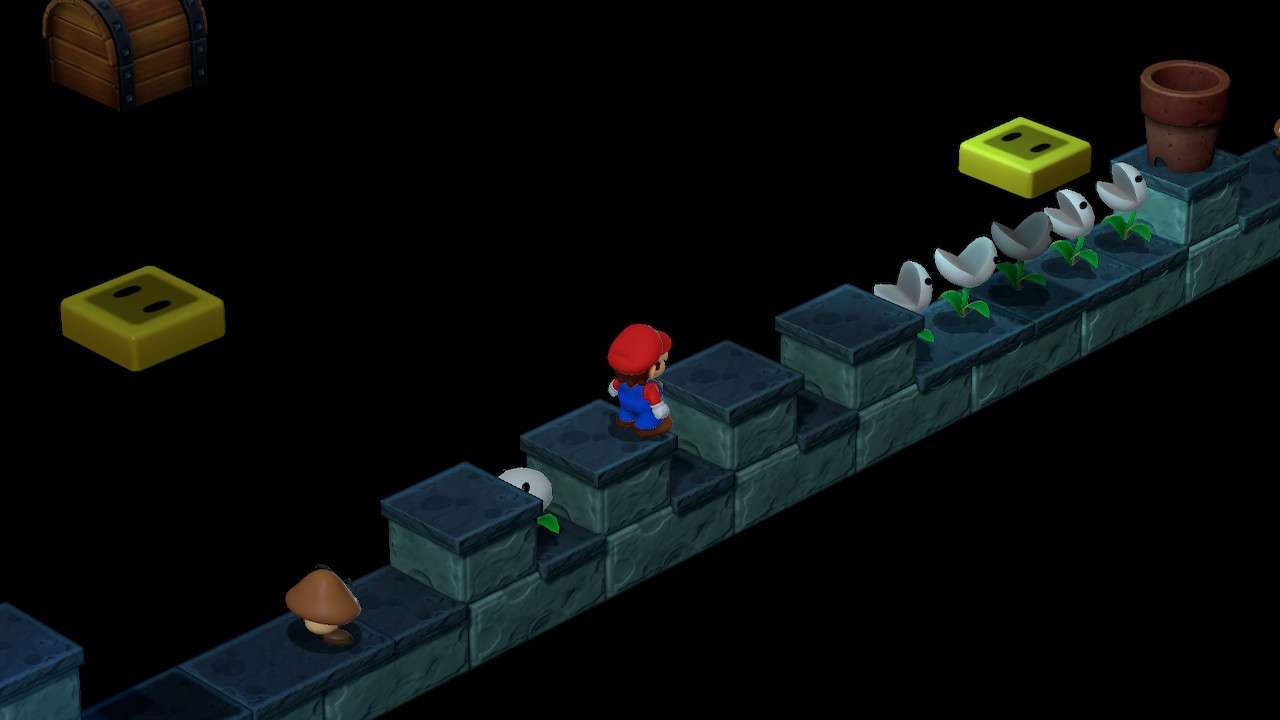 Avant toute chose, il est bon de noter que le rédacteur de ce test – un amoureux des Paper Mario appréciant la saga des Mario & Luigi – n’a jamais joué à la version originale du titre avant la sortie du remake. Quelques sessions en parallèle ont été nécessaires pour comparer le matériau brut de sa refonte, toutes effectuées sur la SNES Mini. Évacuons donc tout de suite les différences qui sautent le plus aux yeux, à commencer évidemment par tout le travail graphique. La direction artistique, très respectueuse de celle de l’époque, fonctionne à merveille avec ses personnages et ses environnements écrasés façon coffre à jouets, tout en étant plus détaillé dans ses modèles et textures. Les couleurs y sont davantage chatoyantes, sa palette n’étant plus limitée par les contraintes techniques de l’époque, mais c’est davantage dans l’utilisation de ses jeux de lumière que le titre gagne en vie. Les nuances de noir y sont étendues, les décors sombres plus lisibles. Seule la vue en 3D isométrique risque de fâcher les joueurs, toujours aussi peu adaptée à certaines phases de plateforme précises. On regrette aussi les boîtes de textes de l’époque et leur effet « parchemin », remplacées par la froideur de cases bien moins stylisées.
