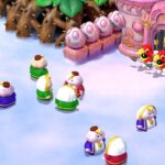 Vaut-il mieux privilégier les techniques d’un seul personnage ? N’utiliser que les compétences les plus puissantes, mais aussi les plus coûteuses en Points Fleur ? Pour contrebalancer son système de combat et ses mécaniques de progression très linéaires, Super Mario RPG incorpore tout au long de son aventure des situations inattendues prenant la forme de mini-jeux, comme la course de Yoshi, la composition de partitions musicales à l’aide de têtards, la descente d’une cascade regorgeant de pièces ou encore la traversée d’une mine en wagonnet. Tous ne se valent évidemment pas, mais chacun d’entre eux parvient à briser de manière bienvenue le rythme de l’aventure. Côté level design, force est de constater que le titre à pris un méchant coup de vieux : l’exploration y est particulièrement limitée par la taille réduite des zones, mais surtout par le manque d’embranchements disponibles. Pour dire, outre le Canal Croâ-croâc et de ses multiples niveaux (immergés ou non), rien ne se montre réellement mémorable.