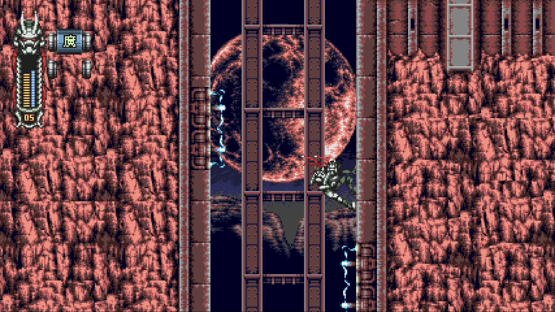 Depuis sa fondation en 2012, le studio JoyMasher s’est construit une jolie réputation dans le domaine des jeux d’action néo-rétro grâce à des productions de qualité comme Oniken, Odallus : The Dark Call ou encore Blazing Chrome. Si les deux premiers affichaient leur amour des gros pixels de l’ère 8 bits, le troisième passait quant à lui à la vitesse supérieure en s’inspirant des run and gun de la génération suivante. Pour leur nouveau titre, réalisé en collaboration avec Asteristic Game Studio et sous la houlette de l’éditeur The Arcade Crew, les développeurs brésiliens ont d’ailleurs décidé de continuer à exploiter le filon, puisque Vengeful Guardian : Moonrider rappelle instantanément certains classiques de l’époque 16 bits, à commencer par les épisodes Mega Drive de la mythique série Shinobi. Il ne s’arrête toutefois pas là et pioche également quelques bonnes idées du côté des Mega Man, nous offrant une expérience assez délicieuse, à la hauteur de celles de ses grands frères.