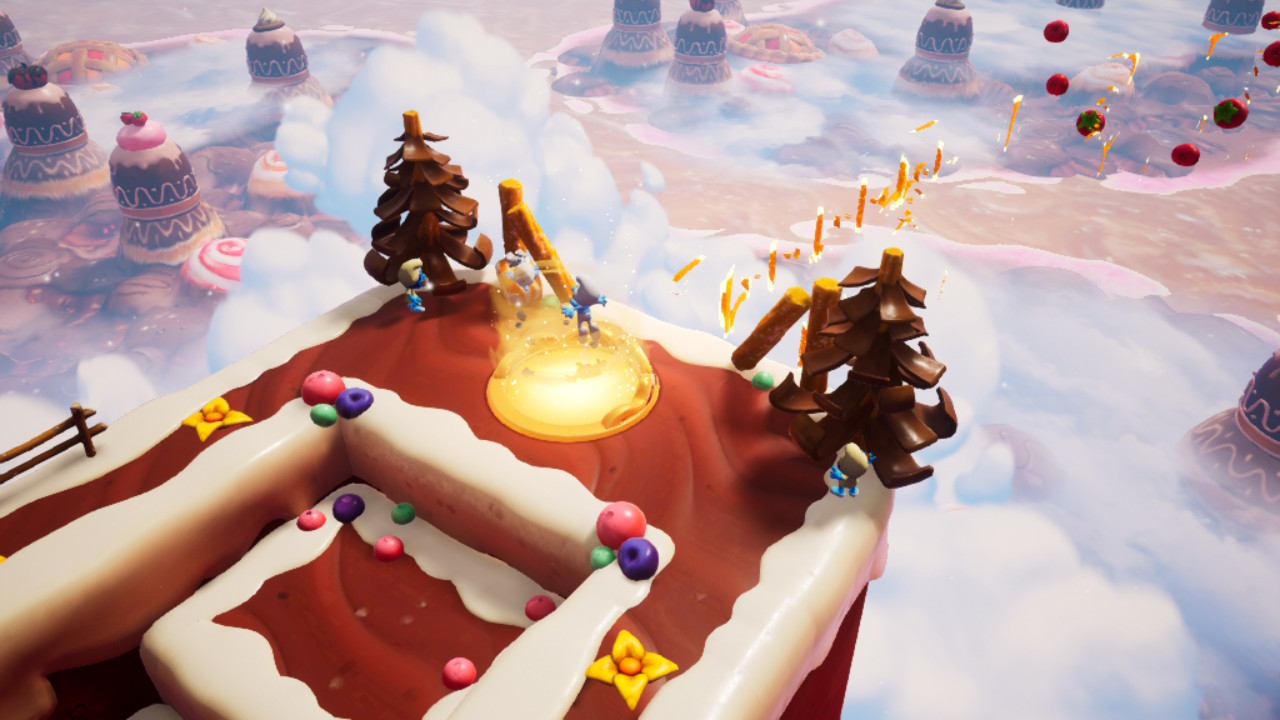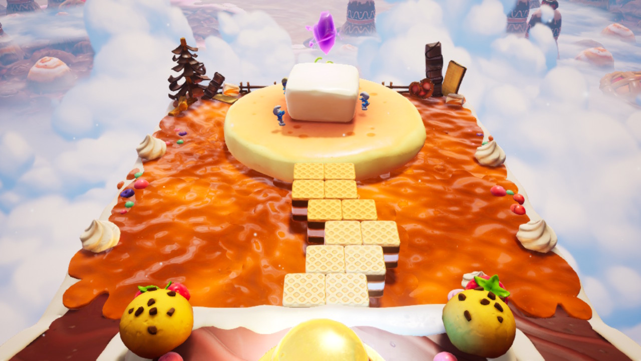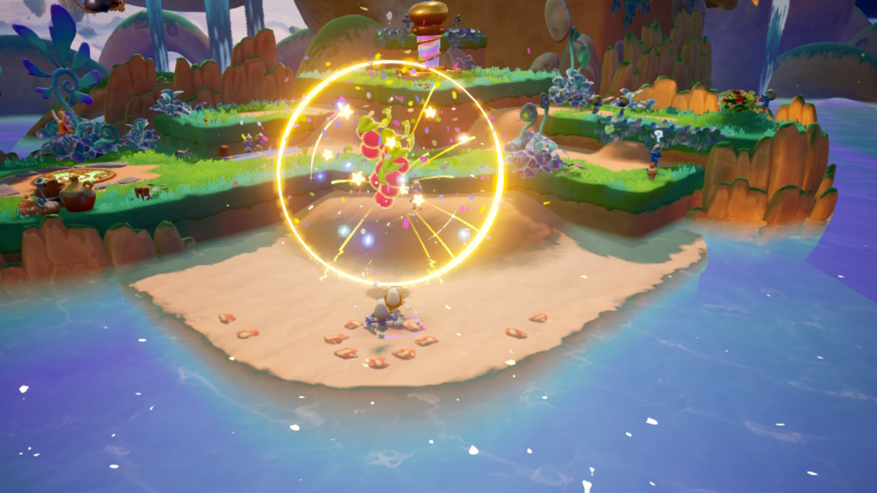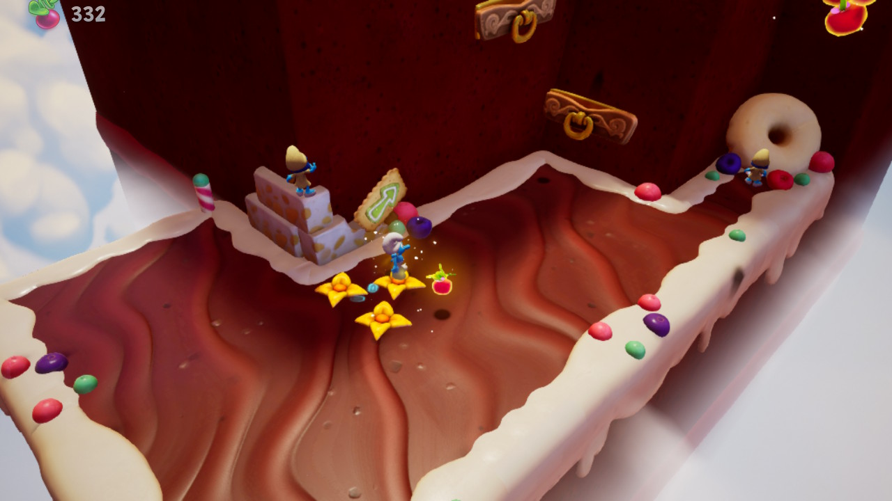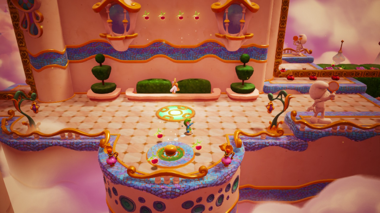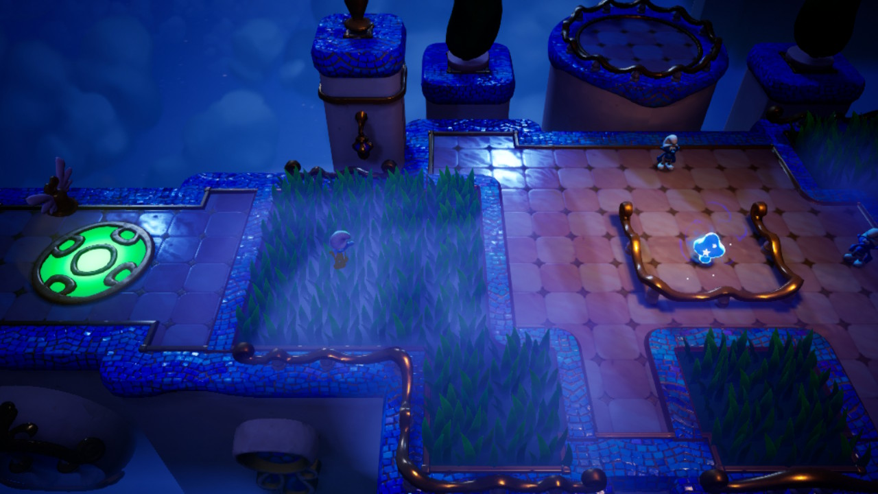Si l’aventure se déguste joyeusement, c’est aussi parce qu’il faut reconnaître qu’il n’y a aucune réelle faute technique. Côté prise en main, le jeu est hyper souple, avec des petites techniques à assimiler qui seront surtout mises à l’épreuve lors du dernier niveau. Côté graphisme, le jeu s’en sort à merveille. Certes, les plateaux ne sont pas garnis de détails mais l’ensemble est vraiment mignon et bien animé. Les tenues que l’on peut acheter auprès du Schtroumpf tailleur sont amusantes. A noter qu’il y en a 2 en DLC… et vu ce que ce n’est que de la cosmétique, il y a comme un sentiment d’arnaque derrière. En tout cas, on se plaît à se balader dans ce village qui prend de plus en plus vie à mesure que l’on réveille les camarades.