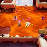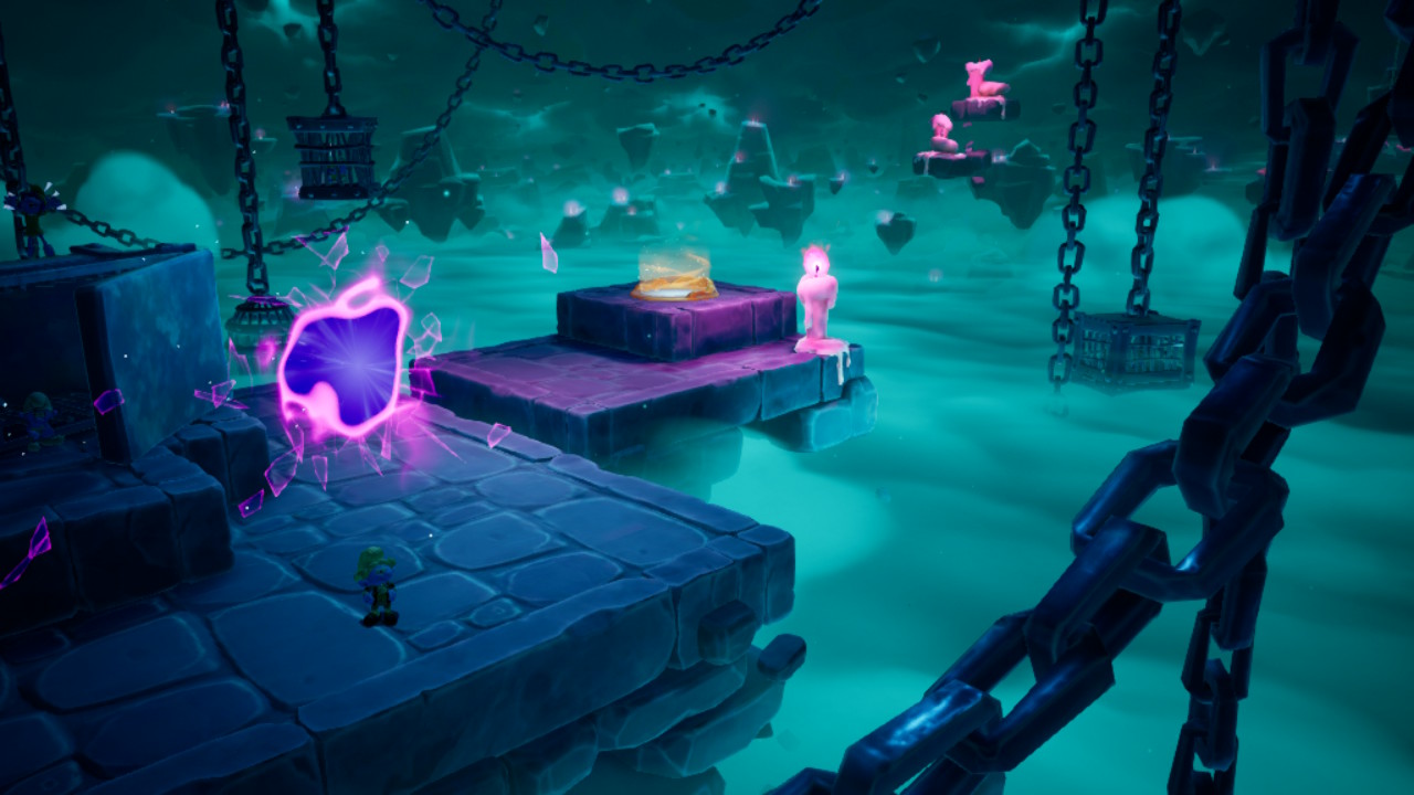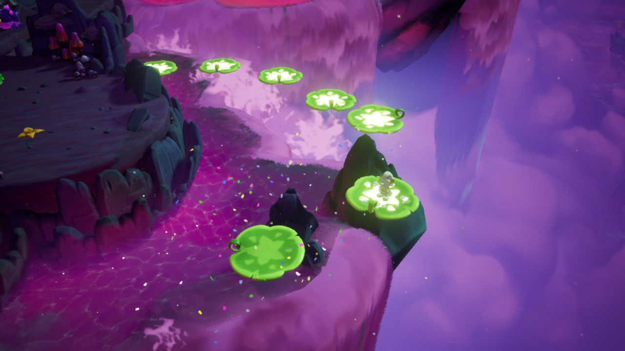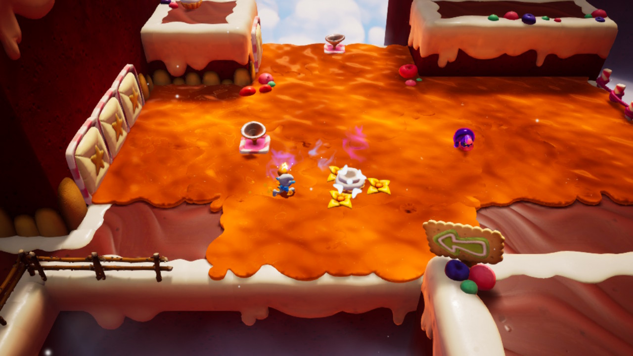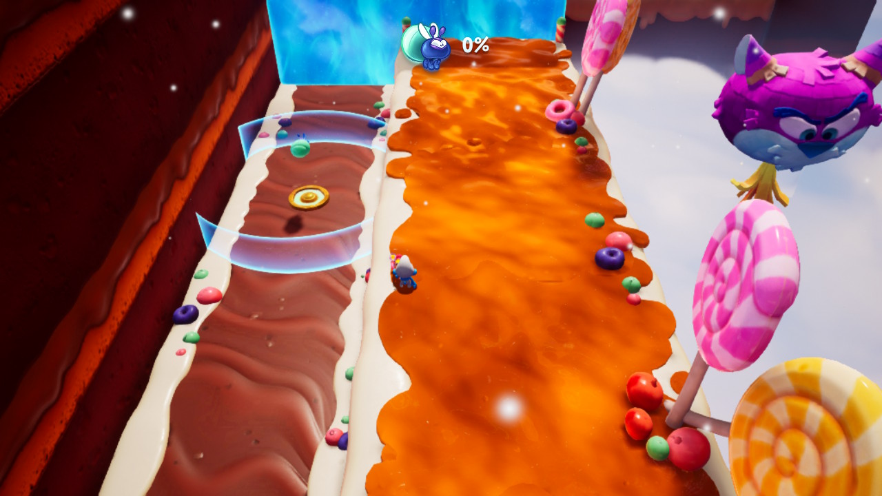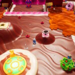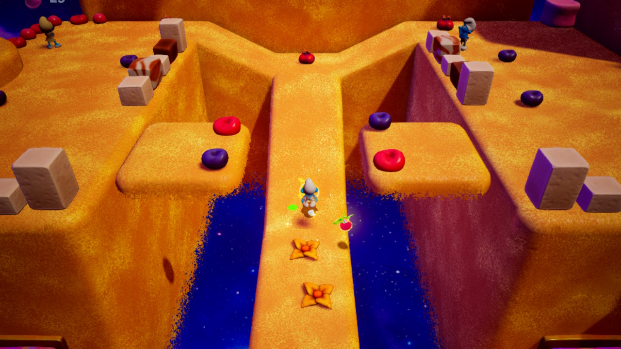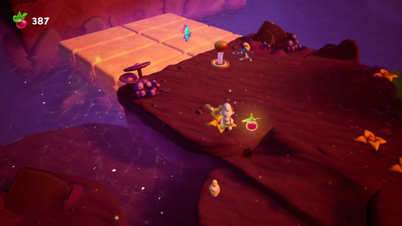 Si l’aventure se déguste joyeusement, c’est aussi parce qu’il faut reconnaître qu’il n’y a aucune réelle faute technique. Côté prise en main, le jeu est hyper souple, avec des petites techniques à assimiler qui seront surtout mises à l’épreuve lors du dernier niveau. Côté graphisme, le jeu s’en sort à merveille. Certes, les plateaux ne sont pas garnis de détails mais l’ensemble est vraiment mignon et bien animé. Les tenues que l’on peut acheter auprès du Schtroumpf tailleur sont amusantes. A noter qu’il y en a 2 en DLC… et vu ce que ce n’est que de la cosmétique, il y a comme un sentiment d’arnaque derrière. En tout cas, on se plaît à se balader dans ce village qui prend de plus en plus vie à mesure que l’on réveille les camarades.