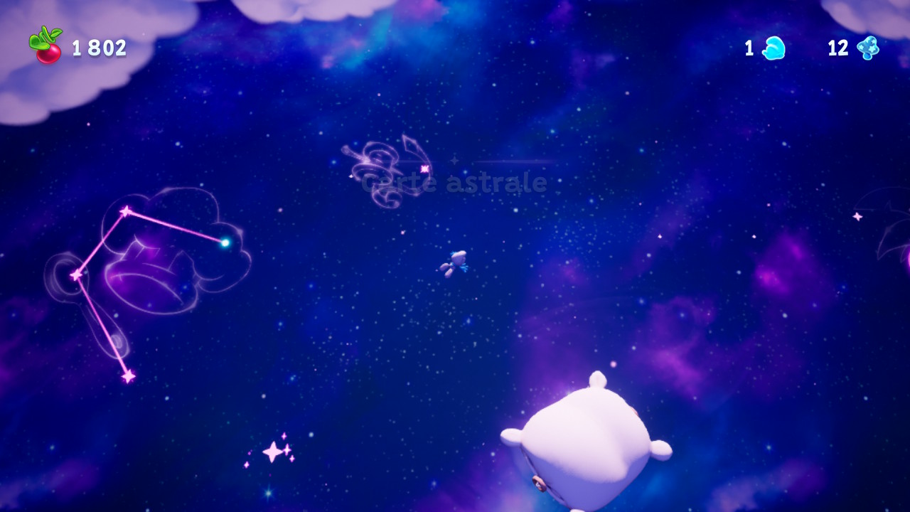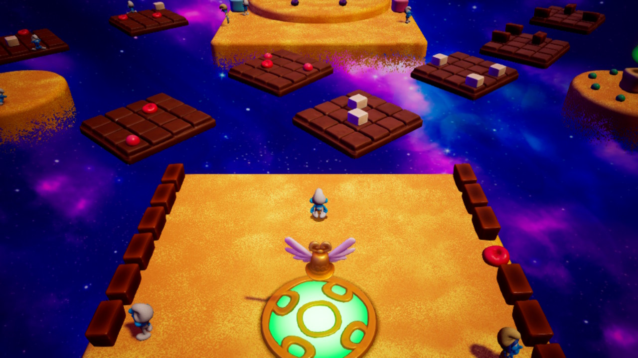 Au centre du village se trouve un énorme oreiller qui envoie notre aventurier sur la carte céleste, la zone de sélection des niveaux. Chaque constellation représente le rêve d’un Schtroumpf. L’objectif est donc de compléter ce rêve pour libérer le Schtroumpf en question. Les mondes, tout en 3D isométrique, font appel à chaque fois à une mécanique spécifique et sont plutôt bien ficelés avec des secrets intelligemment placés qui, sans perturber les joueurs aguerris, apportent une dimension en terme d’exploration assez fun.