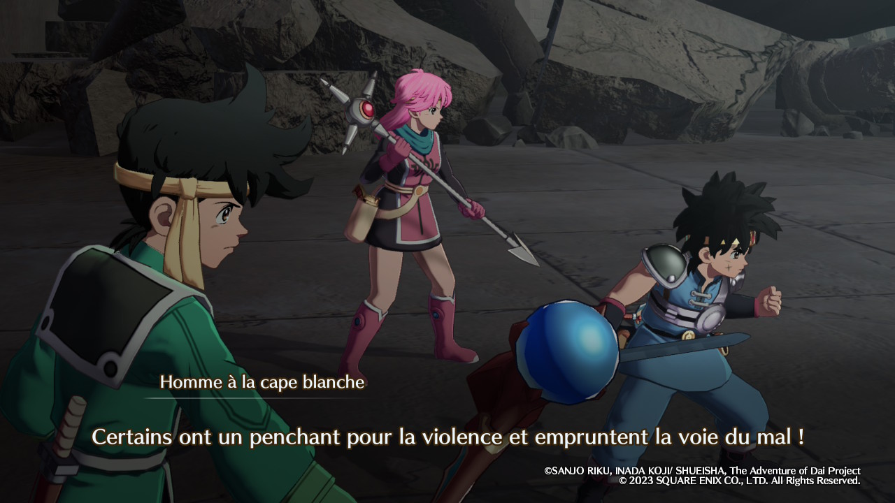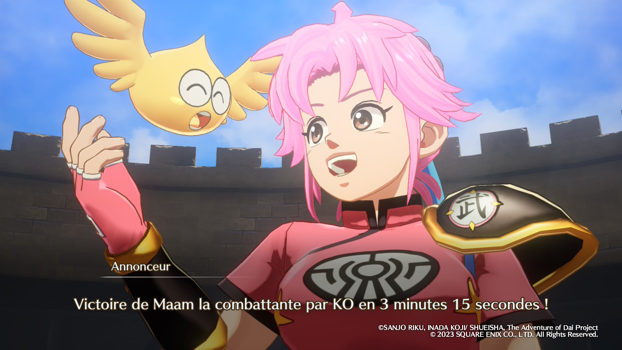 À défaut d’une approche technique plus ambitieuse, comme celle des innombrables jeux de baston Dragon Ball Z qui arrivent encore à présenter de manière un tant soit peu originale des arcs scénaristiques vus et revus depuis plus de trente ans, on aurait donc apprécié pouvoir profiter de l’intégralité de la Grande Aventure de Dai, telle que dépeinte dans le manga et dans l’anime. Or, ce n’est pas le cas ici puisque le récit s’arrête juste après l’affrontement contre la terrifiante forteresse de Rochedémon. Un moment certes marquant de l’œuvre originale, mais qui se situe encore pendant sa première moitié – plus précisément à l’épisode 41 (sur 100) de l’anime et au tome 16 (sur 37) du manga. Pour découvrir la suite de l’histoire, il faudra donc soit attendre une hypothétique suite (peu crédible vu l’accueil réservé à Infinity Strash), soit se diriger vers un autre média. On peut alors légitimement se poser la question de l’intérêt d’investir dans une adaptation vidéoludique incomplète, et les arguments sont bien entendu à aller chercher du côté du gameplay.