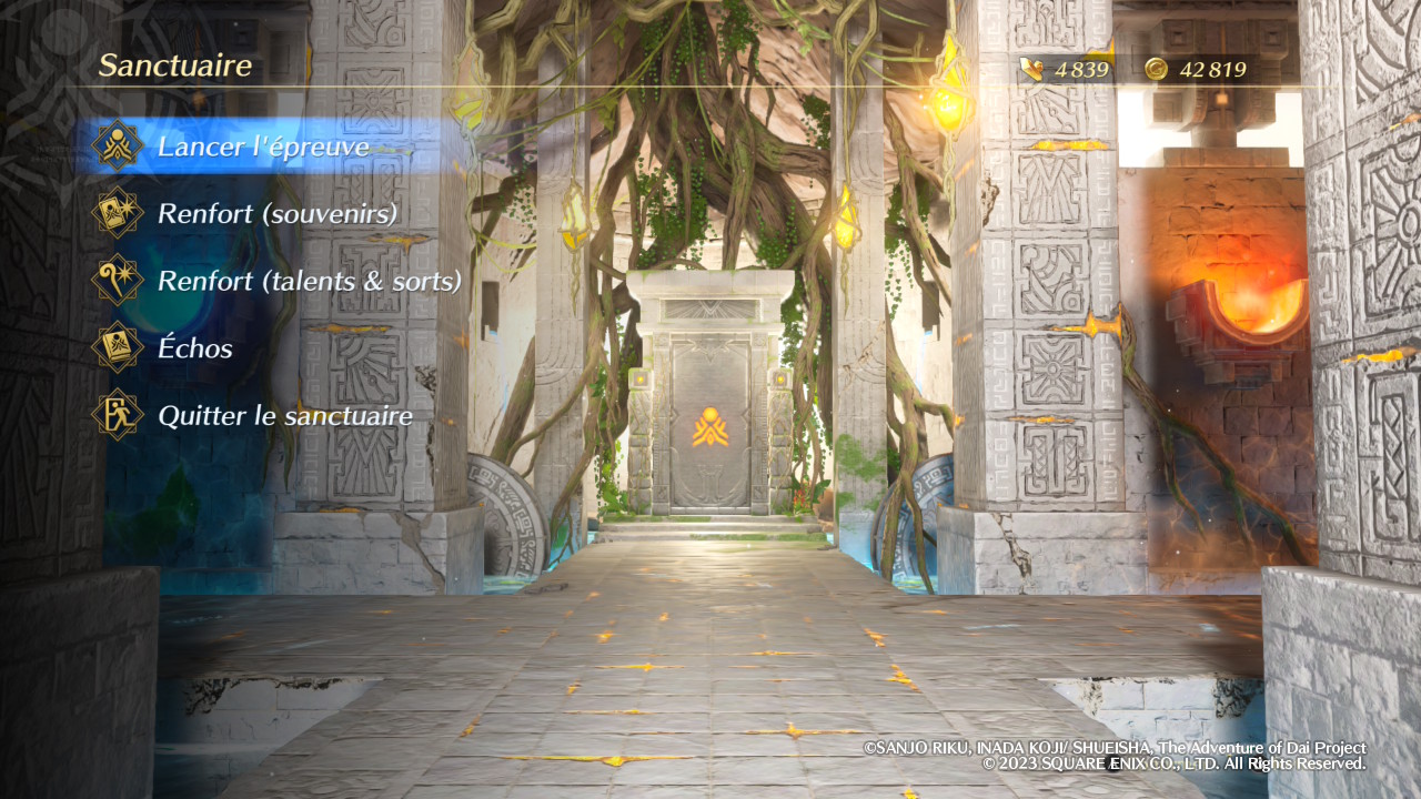 Si le défi offert par ce mode challenge est loin d’être négligeable, force est de reconnaître que son approche n’est pas très originale et n’apporte finalement pas grand-chose en termes de gameplay. Les ennemis tapent certes (beaucoup) plus fort, toutefois, ils ne sont ni plus intelligents, ni plus inventifs dans leurs tentatives pour nous occire. Afin de renouveler un peu l’expérience et de venir gonfler une durée de vie finalement assez courte en ligne droite (une grosse dizaine d’heures pour le mode histoire), on peut heureusement aller chercher du côté du Sanctuaire et de son approche rogue-lite simple, mais efficace. Accessible assez rapidement dans l’aventure, il s’agit tout d’abord d’un passage obligé pour améliorer ses talents, sorts et souvenirs, à condition bien entendu de disposer des ressources nécessaires. Ces aspects se gèrent directement dans des menus dédiés et on y fera donc des allers-retours réguliers pour renforcer l’équipe. Cela dit, son intérêt principal réside plutôt dans le vaste donjon qu’il nous propose de découvrir à la tête d’un groupe composé d’un à quatre personnages.