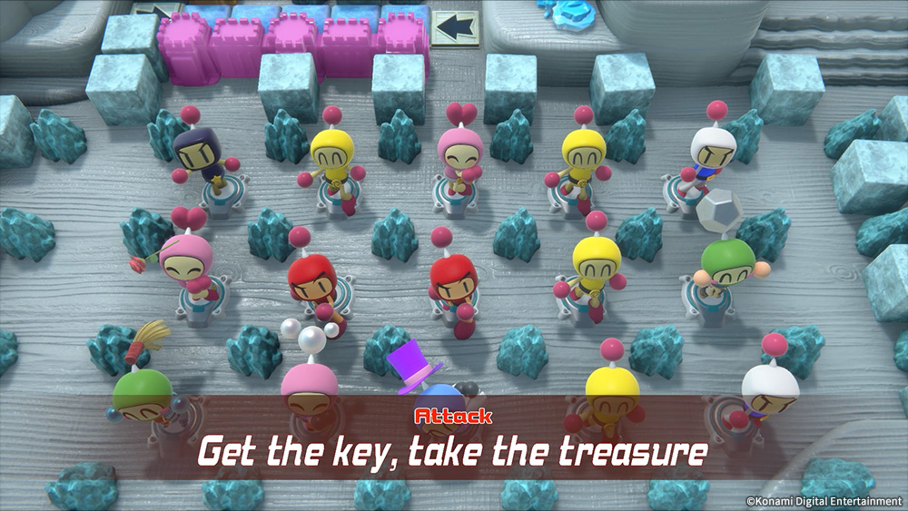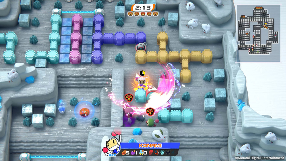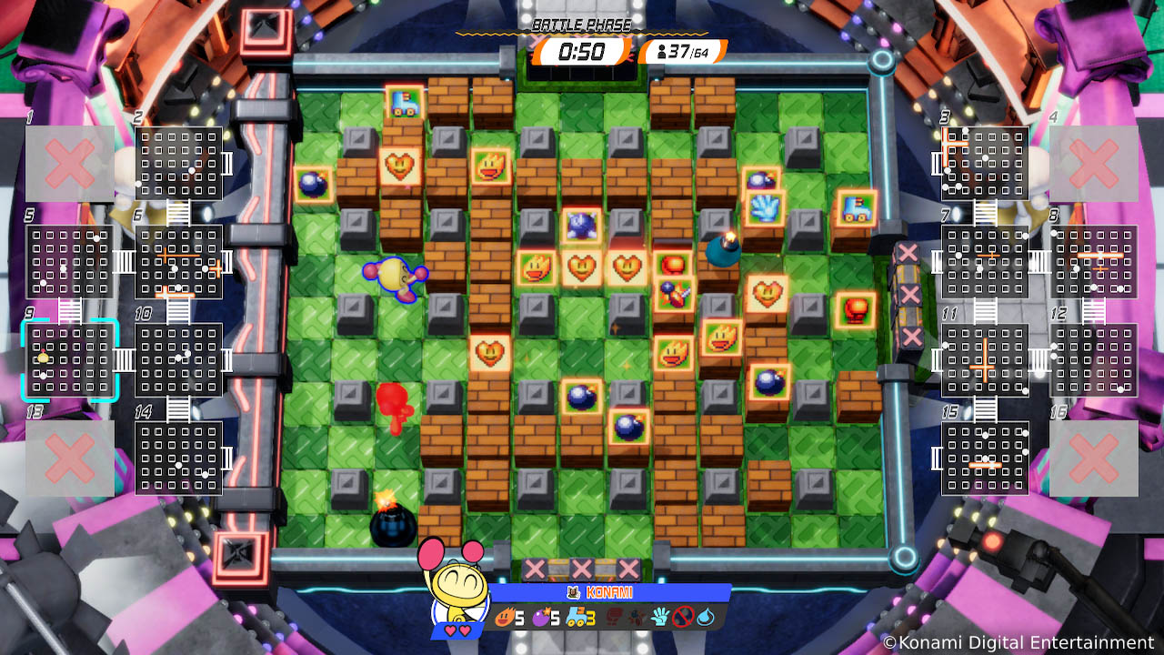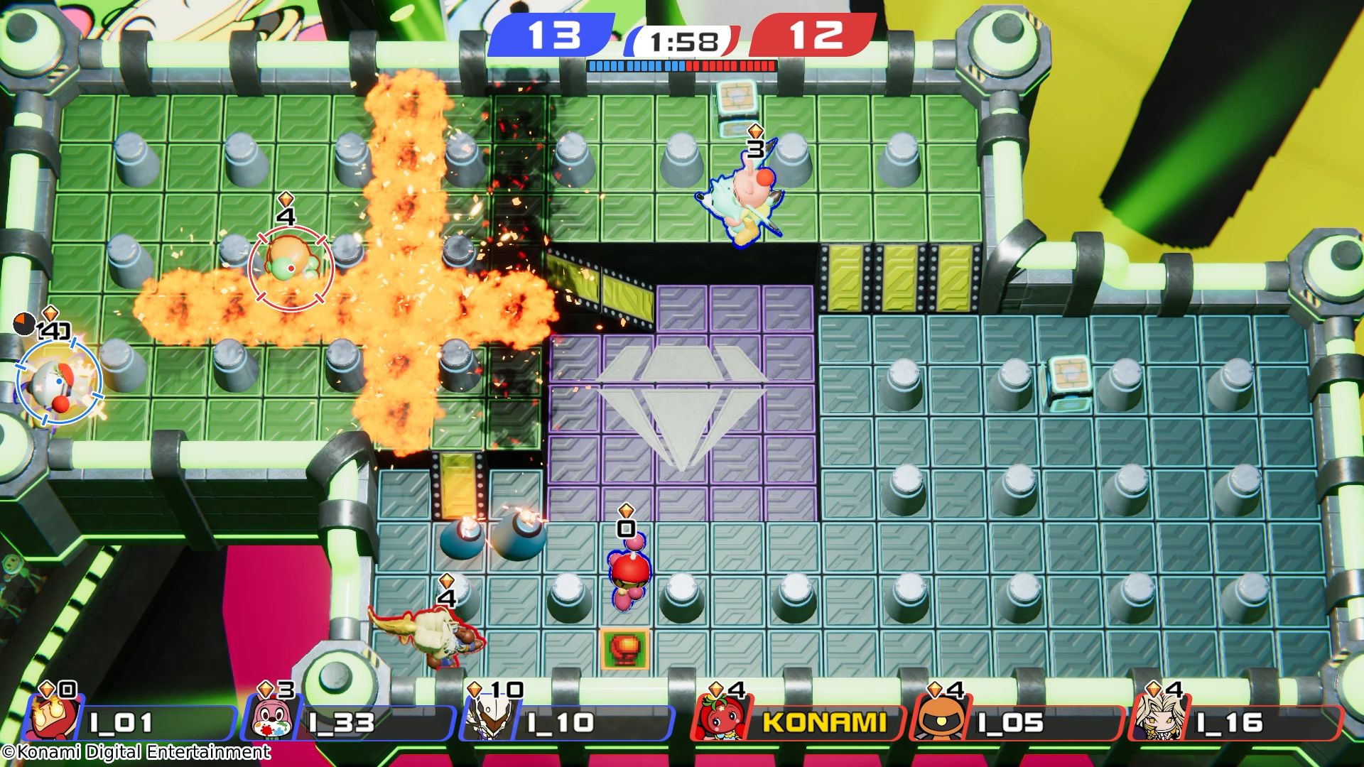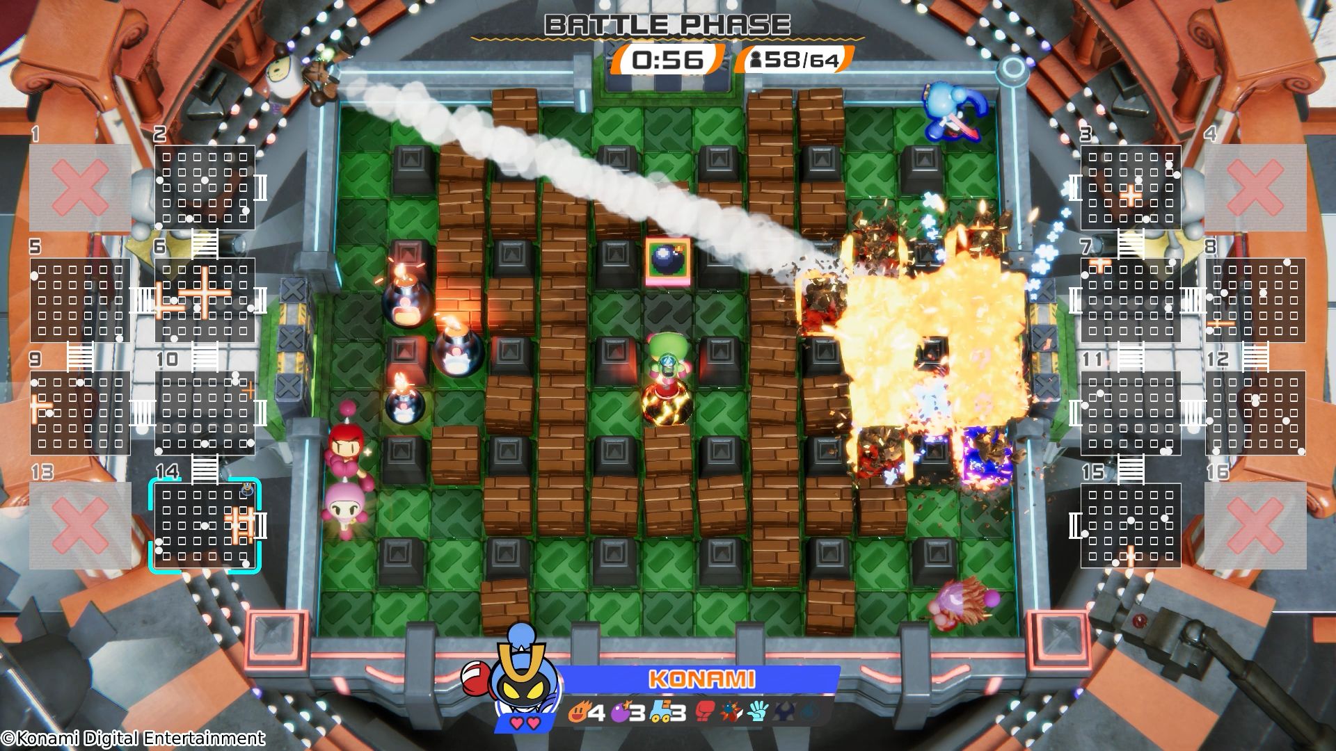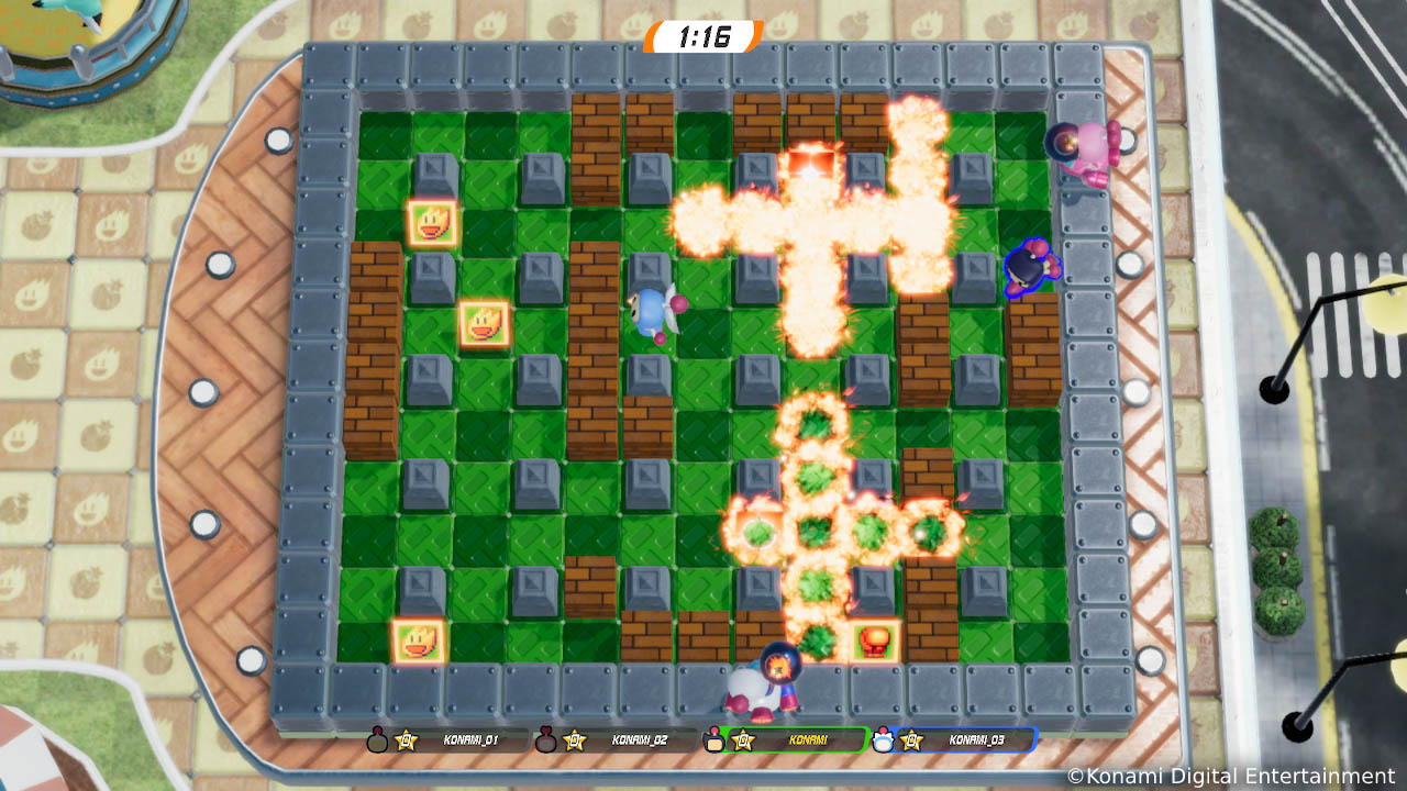 Côté multi, on retrouve ici le cœur battant de la licence. Le mode classique est toujours là, fidèle au poste, et reste fun, ce qui sauve probablement le titre de Konami. Les nouveaux modes, censés apporter un certain vent de fraîcheur, peinent à convaincre : le Battle 64, sorte de battle royale à la sauce Bomberman, amuse deux ou trois parties avant de tomber dans la répétitivité, tandis que le mode Château reprend les séquences tower-defense du mode solo. C’est d’autant plus dommage que le jeu manque cruellement d’options de personnalisation et d’outils communautaires pour vraiment prolonger l’expérience. En local, ça fait toujours le boulot pour une soirée entre potes, mais en ligne, on sent vite que Konami s’est contenté du strict minimum.