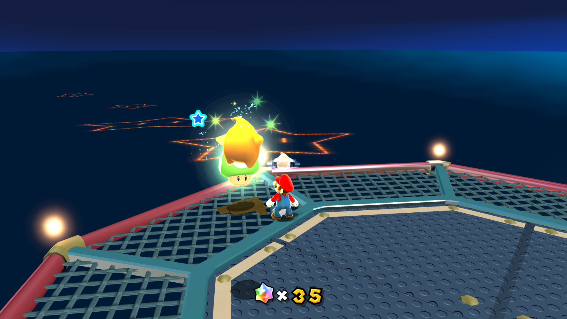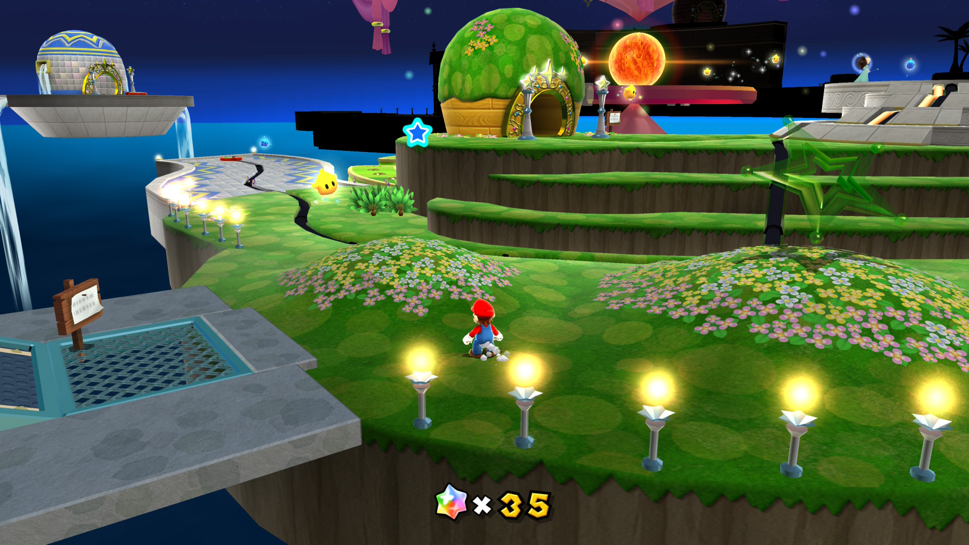 Dans Super Mario Galaxy, Mario embarque à bord de l’astronef d’Harmonie, immense et sublime vaisseau-observatoire, afin de rassembler suffisamment d’énergie stellaire pour retrouver sa chère Peach, enlevée une fois de plus par Bowser. Depuis l’observatoire, il s’envole à travers l’univers pour explorer des galaxies : des mondes miniatures qu’il doit parcourir pour collecter des étoiles et redonner sa gloire d’antan au vaisseau d’Harmonie. L’observatoire, que l’on ne retrouve pas dans le deuxième jeu, contribue immensément au charme de cet opus. Ce lieu apaisant, accompagné d’une musique envoûtante, comporte de nombreux dômes à partir desquels on peut explorer l’univers. Rendre de l’énergie au vaisseau est très satisfaisant, et on a toujours l’impression de « rentrer à la maison » lorsqu’on termine un niveau.
